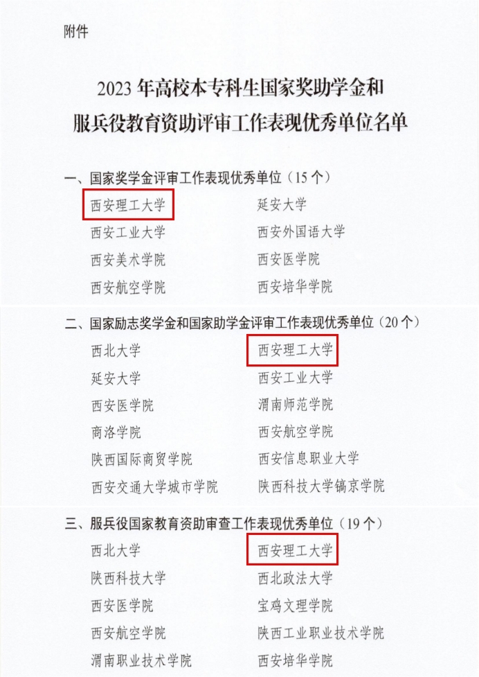 近日,陕西省教育厅印发了《陕西省教育厅办公室关于对2023年高校本专科生国家奖助学金和服兵役教育资助评审工作表现优秀单位进行表扬的通知》,BEAT365分别荣获本专科生国家奖学金、国家励志奖学金和国家助学金、服兵役国家教育资助评审工作“表现优秀单位”,为全省仅有的5所“全优”院校之一。