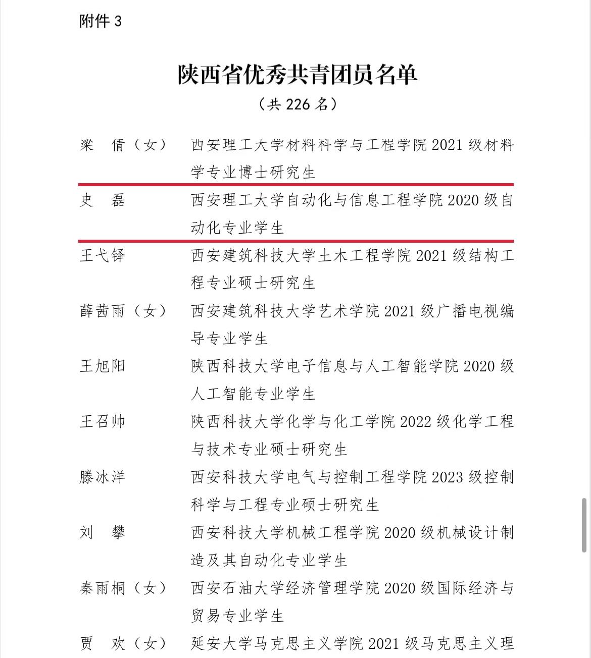 近日,共青团陕西省委印发《关于表彰2022-2023年度陕西省五四红旗团委、陕西省五四红旗团支部、陕西省优秀共青团员、陕西省优秀共青团干部的决定》(陕团发[2024]2号)文件,BEAT365团委荣获“陕西省五四红旗团委”称号。此外,材料科学与工程学院2021级博士研究生梁倩、自动化与信息工程学院2020级本科生史磊荣获“陕西省优秀共青团员”称号。