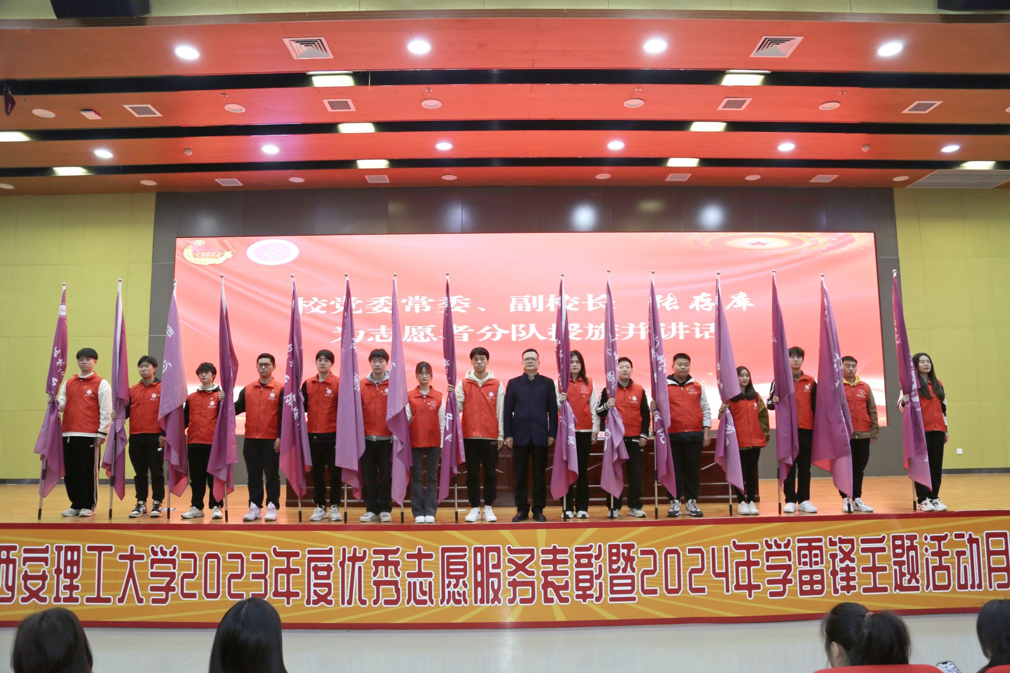 张存库为各学院志愿者分队授旗并讲话,他指出,雷锋的名字家喻户晓,雷锋的事迹深入人心,“学习雷锋好榜样”激励着一代又一代人忠诚于党、奉献祖国、服务人民,本次启动仪式既是对先进的表彰,又是落实立德树人根本任务实践育人关键环节、共建和谐美好校园的一次实际行动。他就BEAT365团员青年进一步学习雷锋精神提出三点意见:一是在学习雷锋精神上要内化于心,把学习雷锋精神作为一种长期、系统、全面的过程;二是在开展志愿服务上要向下扎根,把雷锋精神代代传承下去;三是在实现自我提升上要向阳生长,树立正确劳动观,成为劳动精神的弘扬者、引领者。他强调,全校师生应以本次启动仪式为新的起点,掀起传承雷锋精神、争做时代新人的热潮,积极投身国家发展、社会所需、学校建设,着眼于身边小事,共建和谐美丽校园。