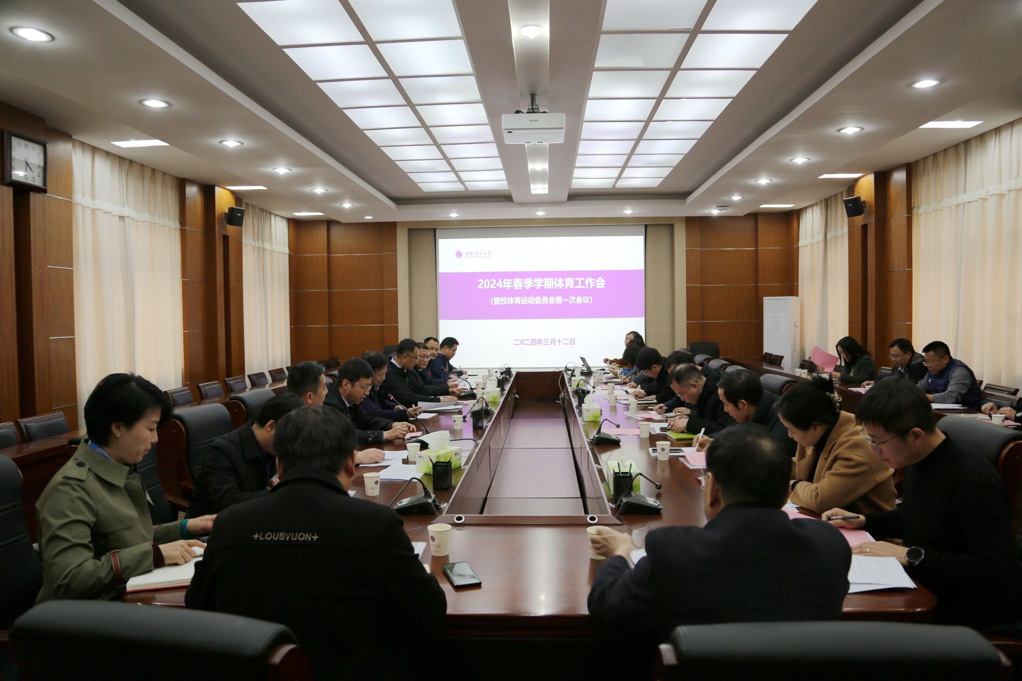 3月12日下午,BEAT365在金花校区101会议室召开2024年体育工作会议。校体育运动委员会主任、副校长华灯鑫出席会议并讲话。会议由体育教学部党总支书记任柯主持。