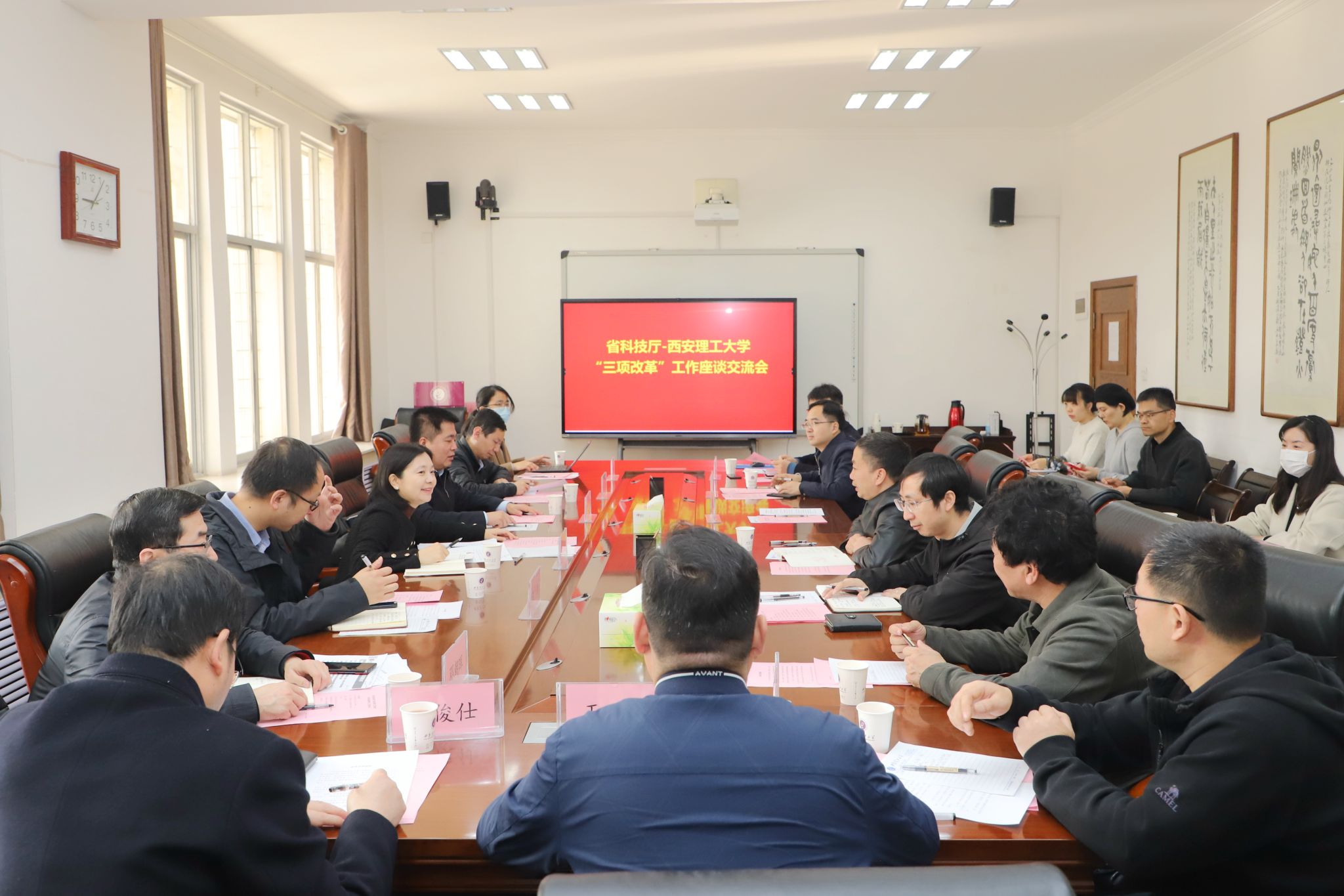 科技厅政策法规与创新体系建设处、西安交通大学、西北工业大学相关人员,BEAT365材料科学与工程学院、自动化与信息工程学院、机械与精密仪器工程学院、科技处、财务处、人事处、资产处、资产公司等单位负责人参加座谈。