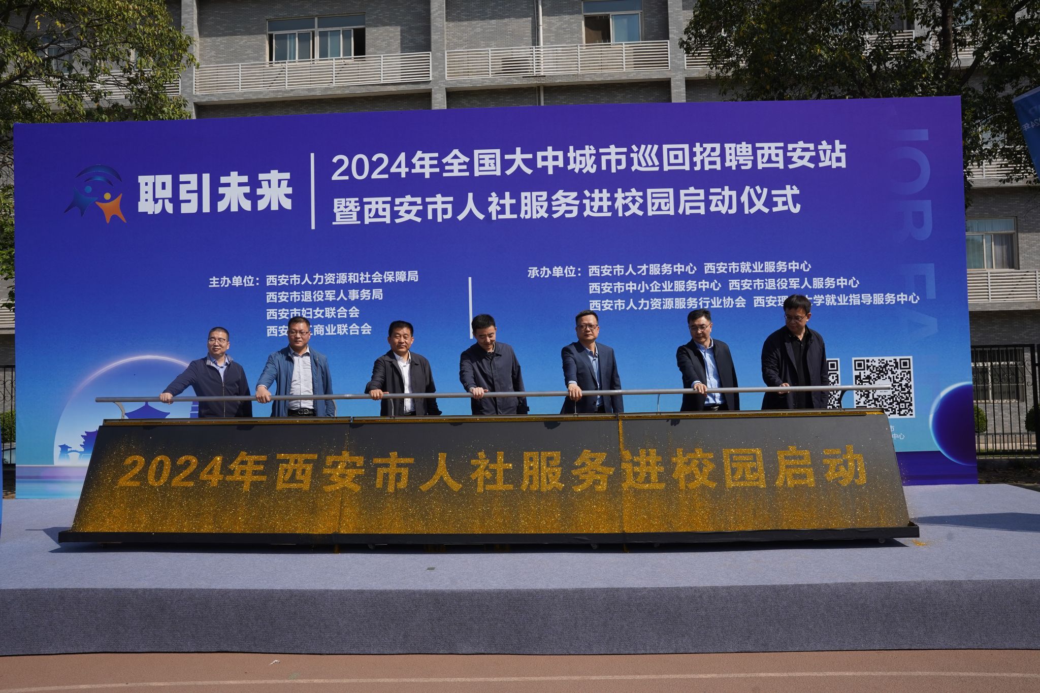 4月12日,“职”引未来—2024年全国大中城市巡回招聘西安站暨西安市人社服务进校园启动仪式在BEAT365金花校区举行。副校长张存库,西安市人社局党组书记、局长廉宏伟,西安各区县、西咸新区、各开发区人社部门等相关负责人出席启动仪式。