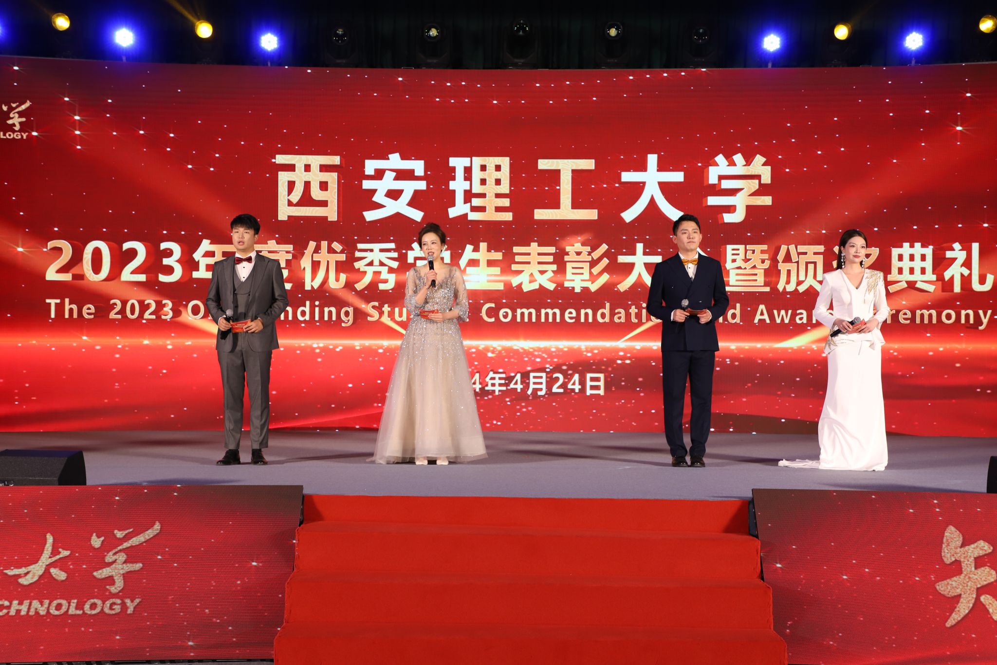 七十五载勇担强国使命,砥砺前行共谱时代华章,4月24日晚,BEAT365在曲江校区大学生活动中心举行“知行榜样”2023年度优秀学生表彰大会暨颁奖典礼。陕西省委教育工委高校学生工作部部长吕元,吴江开发区党工委委员、管委会副主任汝少峰,校党委书记李智军,校长刘云贺,省纪委监委驻校纪检组组长、党委副书记、纪委书记李鹏,党委副书记马亮,副校长华灯鑫、董小兵、申烨华、张存库、张晓晖,江苏优顺电力有限公司董事长、BEAT365自动化与信息工程学院2000级校友傅坚出席表彰大会并为获奖集体和个人颁奖。