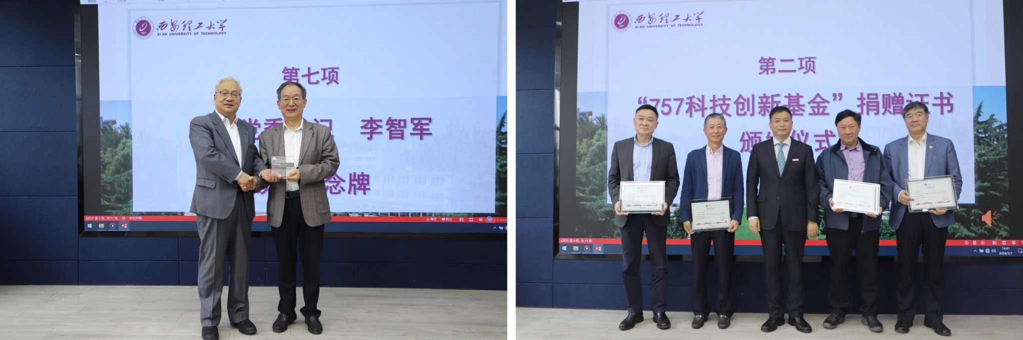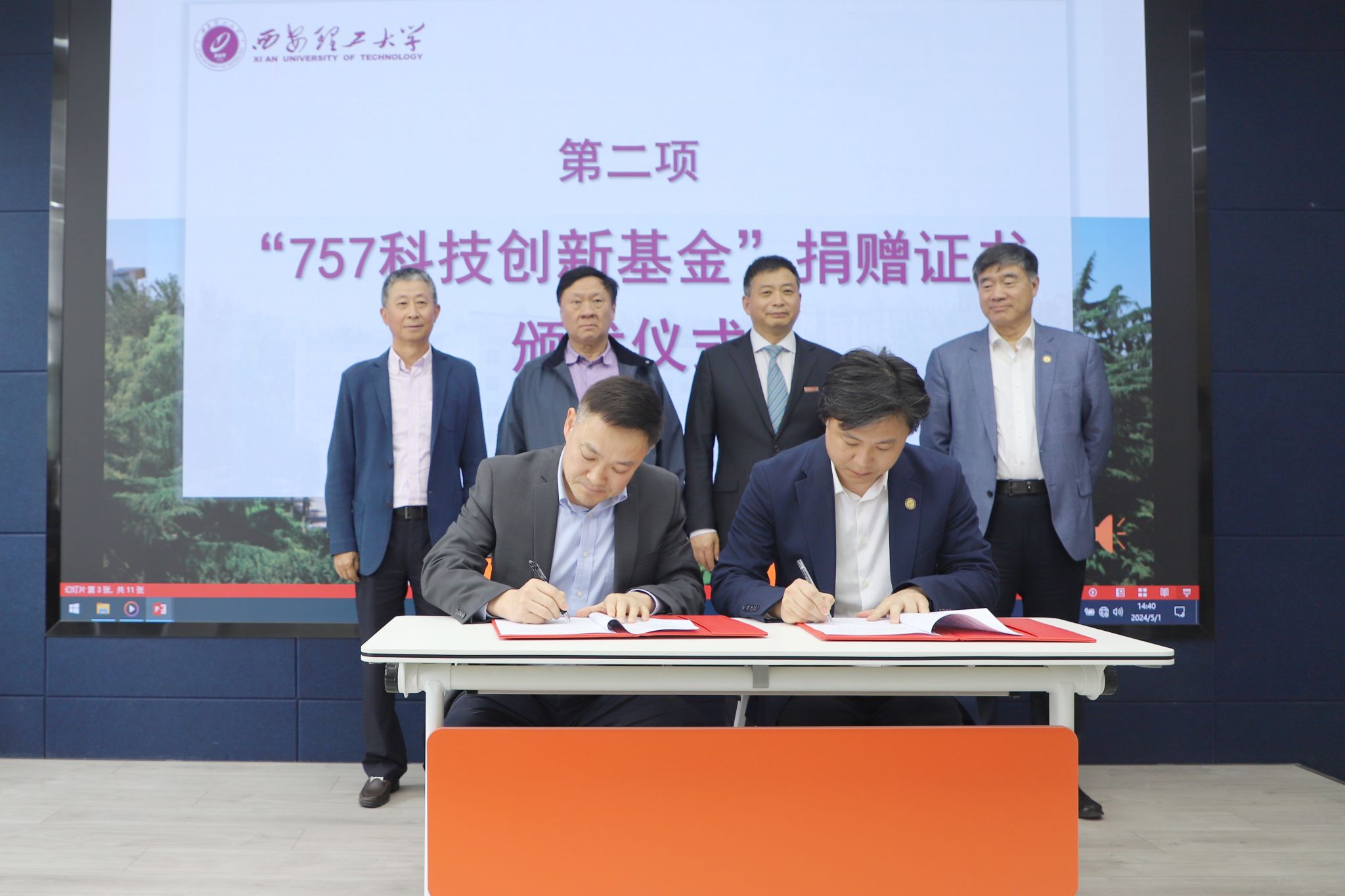 此次会议,还举行了“757”科技创新基金签约仪式。该基金由来自印包学院、机仪学院、自动化学院的7位校友共同筹资210万人民币设立,旨在资助学校在高端装备制造、新材料、集成电路等领域的老师和学生,围绕国家重大需求和卡脖子问题进行科研和转化工作,助力学校事业高质量发展。