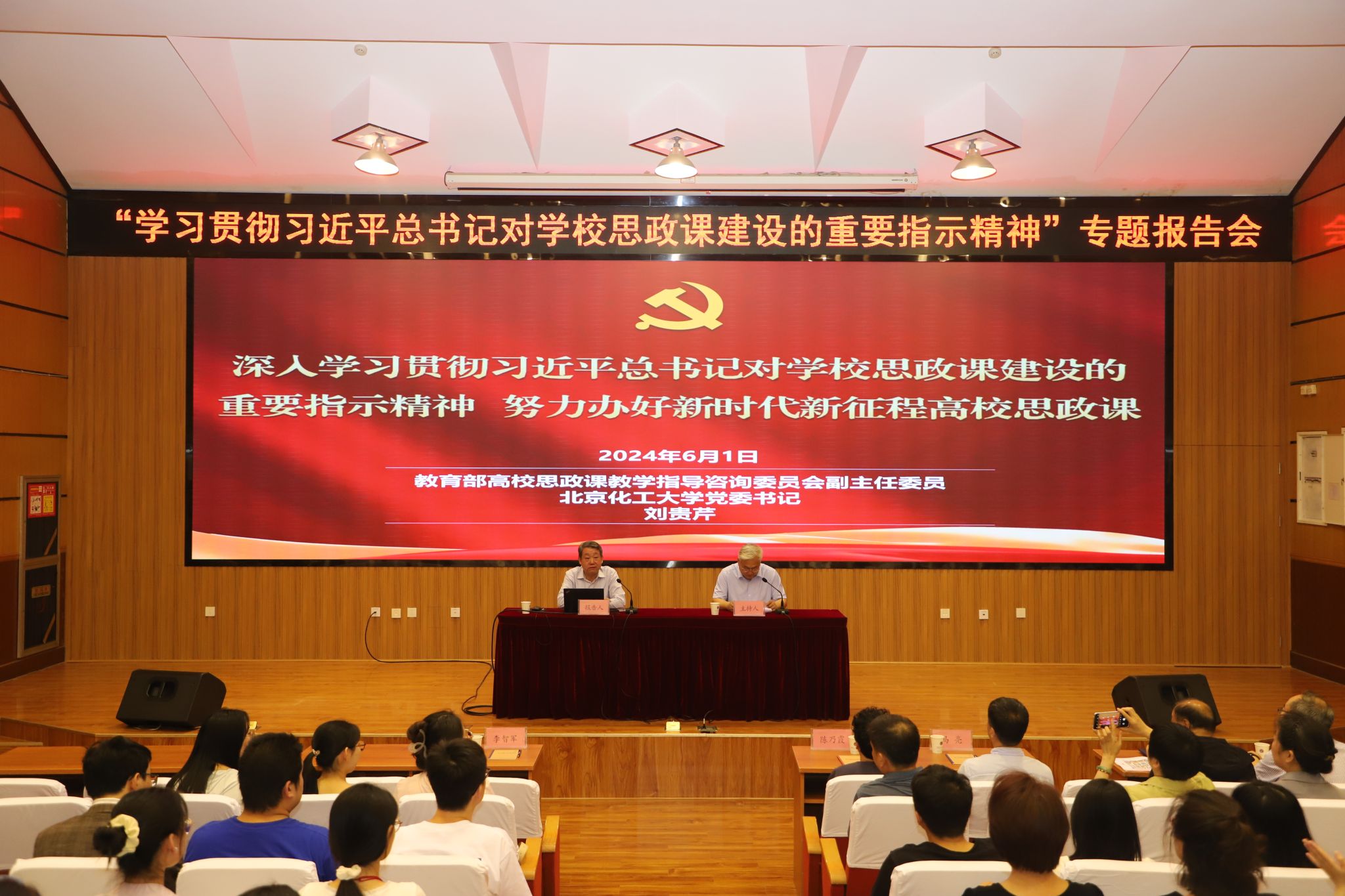 学校思想政治理论课领导小组成员单位负责人,各基层党委(总支、直属支部)书记,各学院分管学生工作副书记,马克思主义学院全体思政课教师,辅导员、教师代表参加报告会。