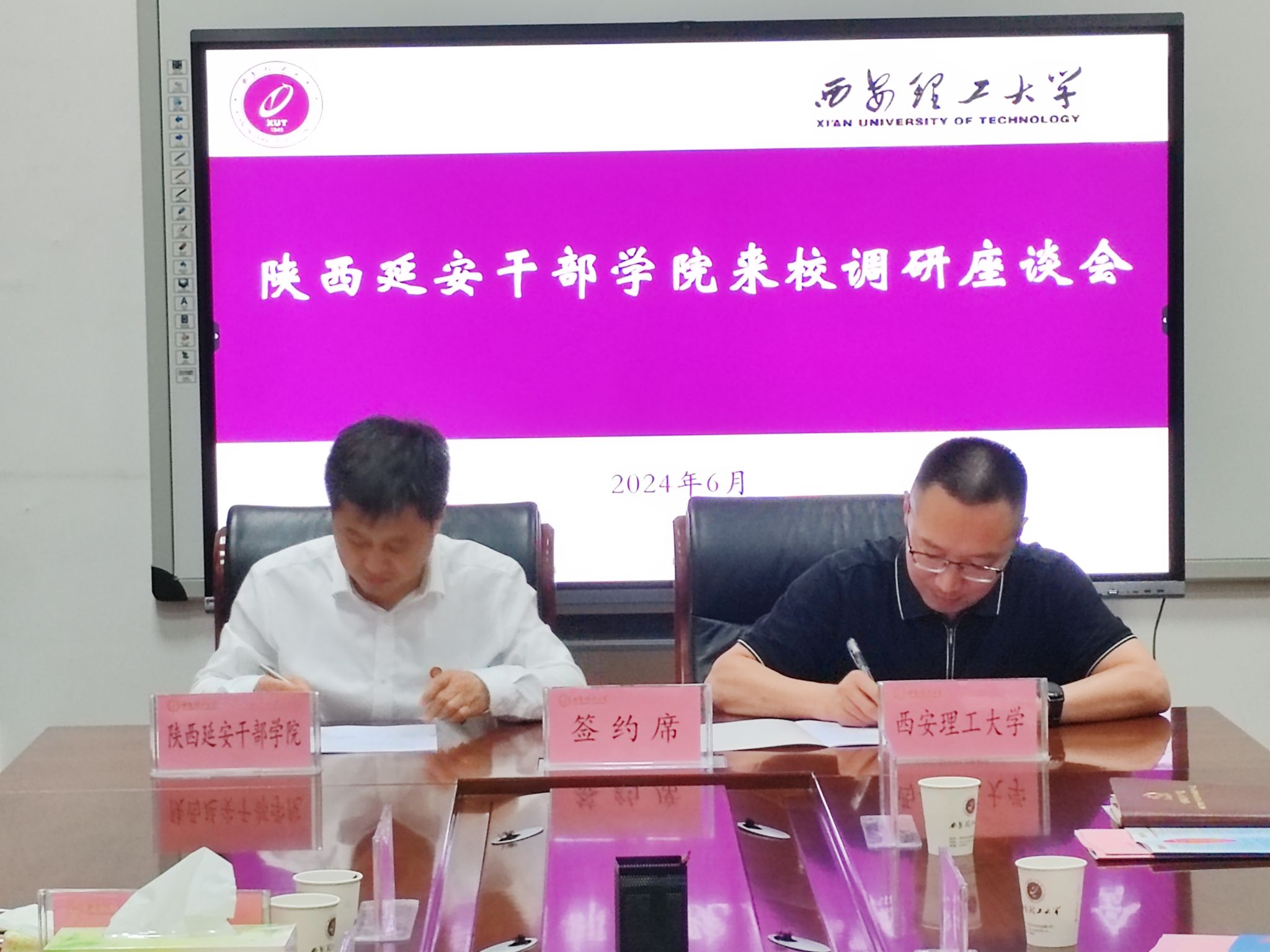 6月6日下午,陕西延安干部学院常务副院长王浩一行来校调研座谈并签署合作协议。校党委副书记马亮会见王浩一行,校党委常委、组织部部长高勇主持座谈会。