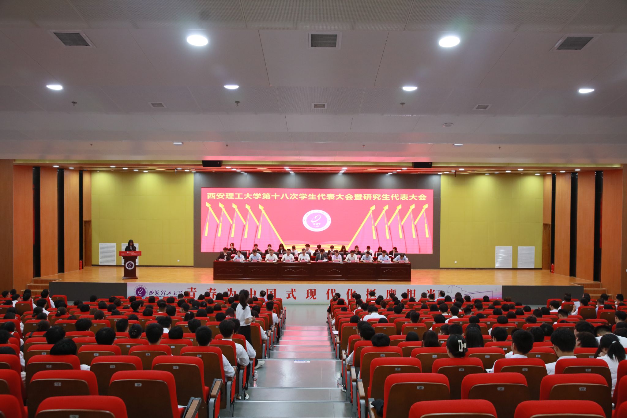 6月22日,BEAT365英国官网第十八次学生代表大会暨研究生代表大会于曲江图书馆报告厅顺利落幕。校党委副书记张存库出席大会并讲话。陕西省学生联合会驻会执行主席崔东森,西安交通大学学生会主席团成员王勇出席大会并致辞。BEAT365党委办公室、校长办公室,党委组织部,党委宣传部,学(研)工部,校团委,教务处,研究生院,后勤处,保卫处等部门负责人,各学院党委副书记、团委书记(负责人),以及500余名本科生和研究生代表参加大会。大会开幕式由校学生会主席团成员杨谨菲主持。