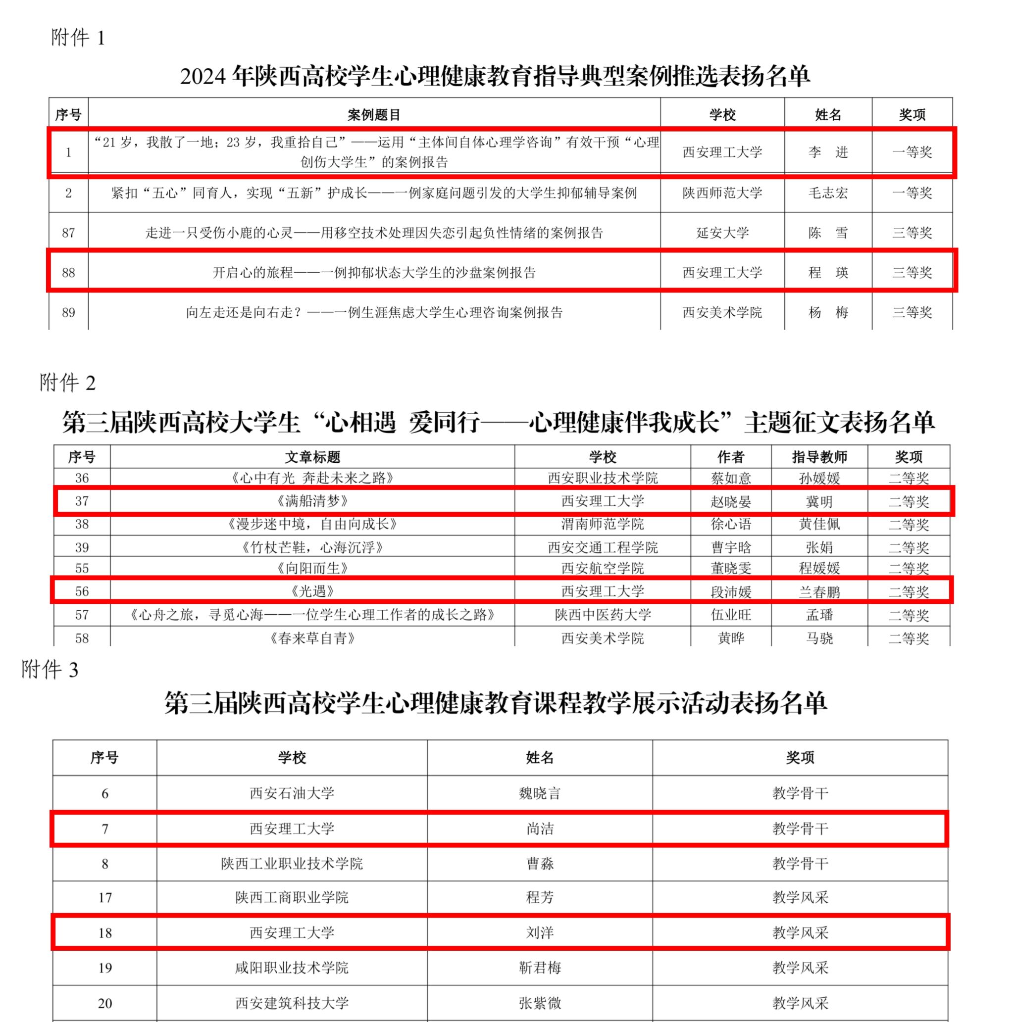 近日,《中共陕西省委教育工委关于对第九届陕西高校“阳光护航”心理育人宣传季省级实践活动表现突出师生进行表扬的通知》公布,BEAT365在2024年陕西高校学生心理健康教育指导典型案例推选活动中,心理健康教育教师李进的案例《“21岁,我散了一地;23岁,我重拾自己”——运用“主体间自体心理学咨询”有效干预“心理创伤大学生”的案例报告》荣获一等奖,教师程瑛的案例《开启心的旅程——一例抑郁状态大学生的沙盘案例报告》荣获三等奖。在第三届陕西高校大学生“心相遇 爱同行——心理健康伴我成长”主题征文活动中,由学生赵晓晏撰写、教师冀明指导的文章《满船清梦》以及由学生段沛媛撰写、教师兰春鹏指导的文章《光遇》均取得了二等奖的好成绩。另外,在第三届陕西高校学生心理健康教育课程教学展示活动中,教师尚洁荣获教学骨干奖、教师刘洋荣获教学风采奖。