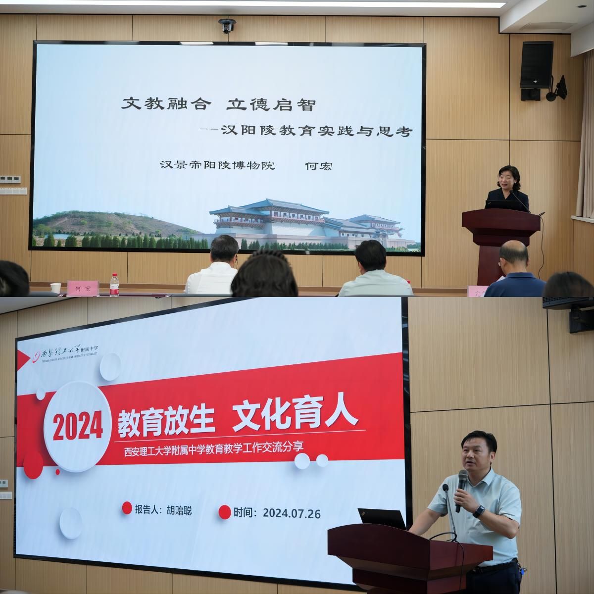 在主题报告环节,汉景帝阳陵博物院副院长何宏以《文教融合 立德启智———汉阳陵教育实践与思考》为题向与会人员分享了以文博教育进校园为重要支点的“第三课堂”,展示了文化遗产和考古遗址的创新活力,丰富了博物馆公共教育方式的创新与实践。BEAT365英国官网附属中学校长胡贻聪以《教育放生 文化育人》为题,从办学理念、教学改革、全方位育人等方面剖析了新时代的育人理念。报告会由校港澳台办公室主任亢文祥主持,现场交流气氛浓厚。