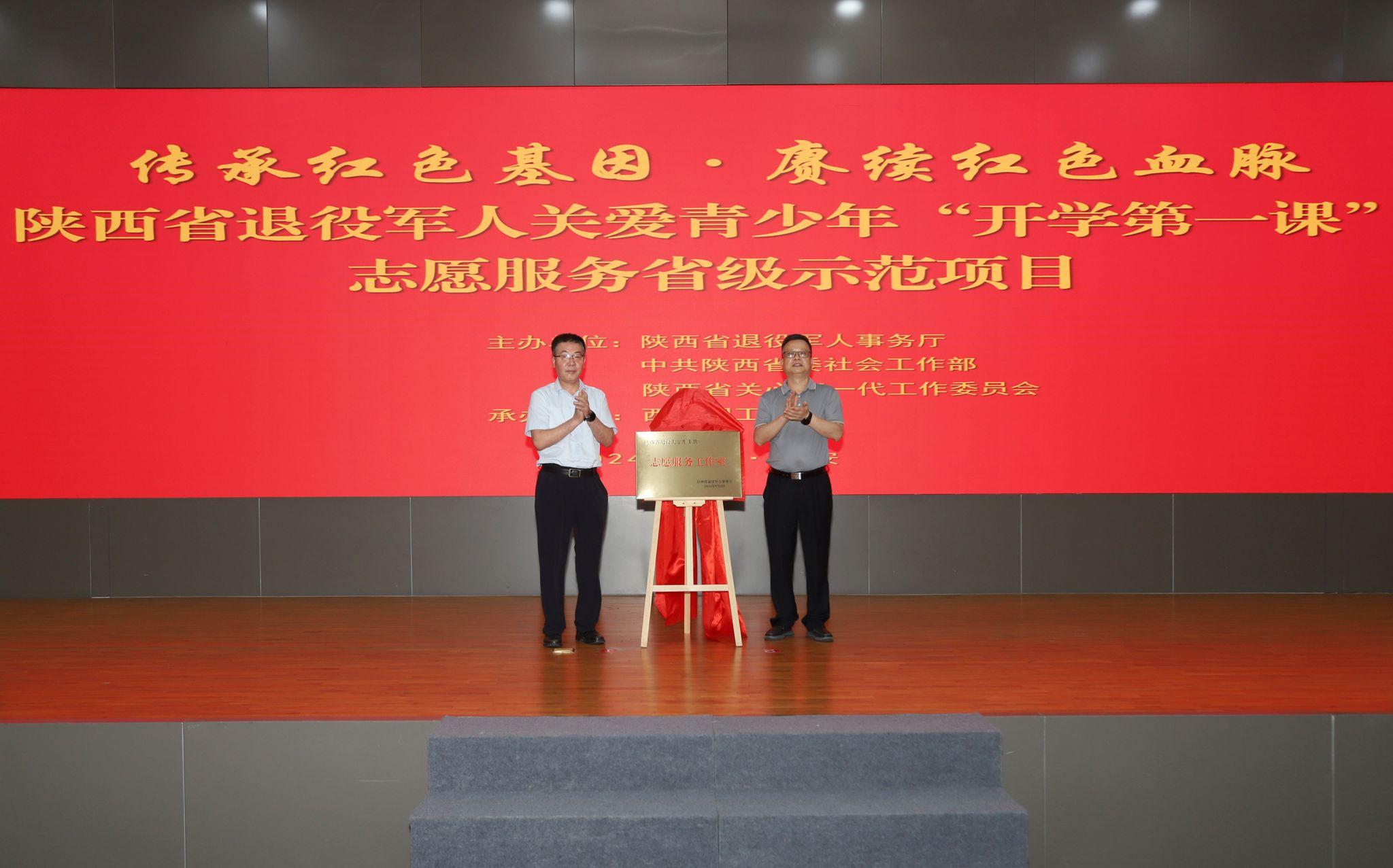 张存库和吴向荣为陕西省退役大学生士兵志愿服务工作室揭牌。与会领导为BEAT365退役大学生士兵代表发放志愿服务礼包。