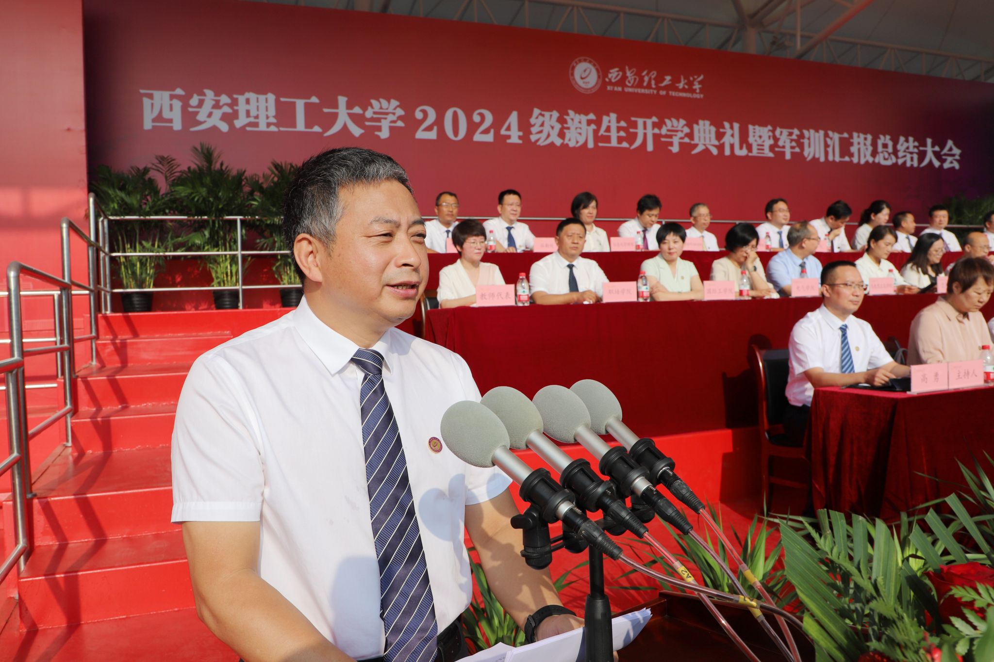 刘云贺向2024级新同学提出三点希望:一是希望同学们胸怀祖国、志存高远,做一名理想远大的西理青年。要在新时代洪流中找准航向,自觉将个人的命运同国家、民族命运紧密相连,将个人理想追求与中国梦深度融合,把责任担在肩上,把根基扎进祖国,努力干成一番新事业,闯出一片新天地。二是希望同学们立德修身、淬炼自我,做一名全面发展的西理青年。要在大学期间涵养品德、潜心读书、增强体魄、提高审美、热爱劳动,在西理工这片沃土上,夯实生命根基,实现德智体美劳全面发展,用实干和奋斗创造美好未来。三是希望同学们吃苦耐劳、拼搏奋进,做一名底色鲜明的西理青年。要时时刻刻牢记自己身上的西理工“标签”,在未来的学习、生活、工作中自觉传承和发扬学校精神,充分展现新时代青年朝气蓬勃的精神面貌,敢做敢为、善作善为,创造人生无悔的业绩,让西理工人鲜明的精神特质永远绽放光芒。