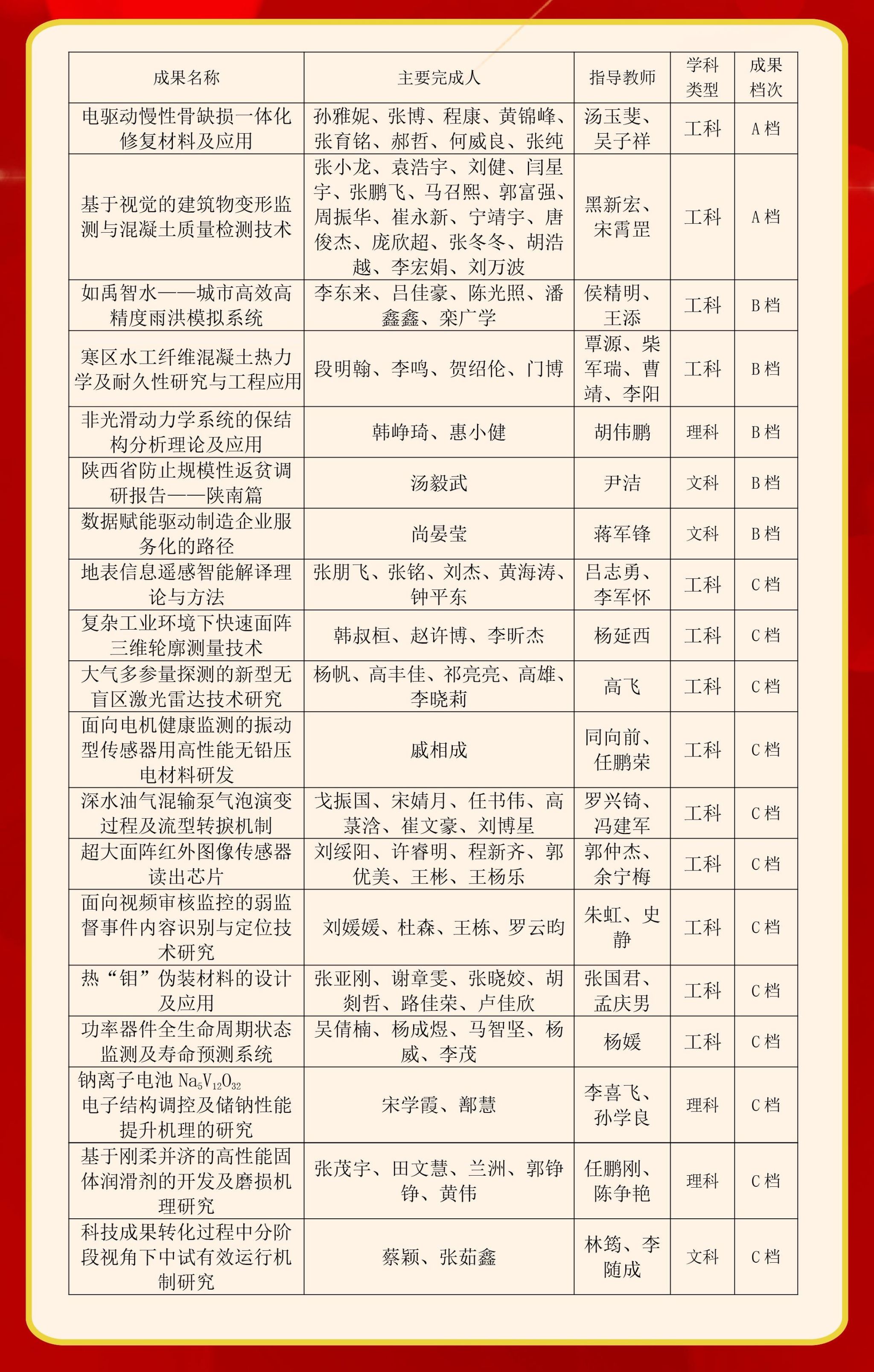 近日,陕西省教育厅、陕西省学位委员会公布了《陕西省第八届研究生创新成果展高质量成果名单的通知》。本届成果展BEAT365共选送研究生创新成果24项,其中“电驱动慢性骨缺损一体化修复材料及应用”等2项作品荣获A档,“如禹智水-城市高效高精度雨洪模拟系统”等5项作品荣获B档,“地表信息遥感智能解译理论与方法”等12项参展作品荣获C档,推荐获奖率79.2%,获奖数量和层次位于参赛高校前列,BEAT365获评表现突出单位,研究生院马欢获批表现突出个人。