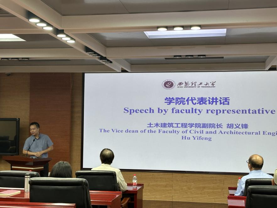 培养单位代表、土木建筑工程学院副院长胡义锋向新生们介绍了学院的基本情况、教育教学资源以及国际学生培养成效。他谈到,国际学生的培养是学校国际化工作的重要内容,学院高度重视,积极推进,有力支持了学科建设,提升了师生国际化视野和人才培养质量。他鼓励新生们充分利用学校提供的学术和文化交流机会,努力学习,实现个人成长与发展。