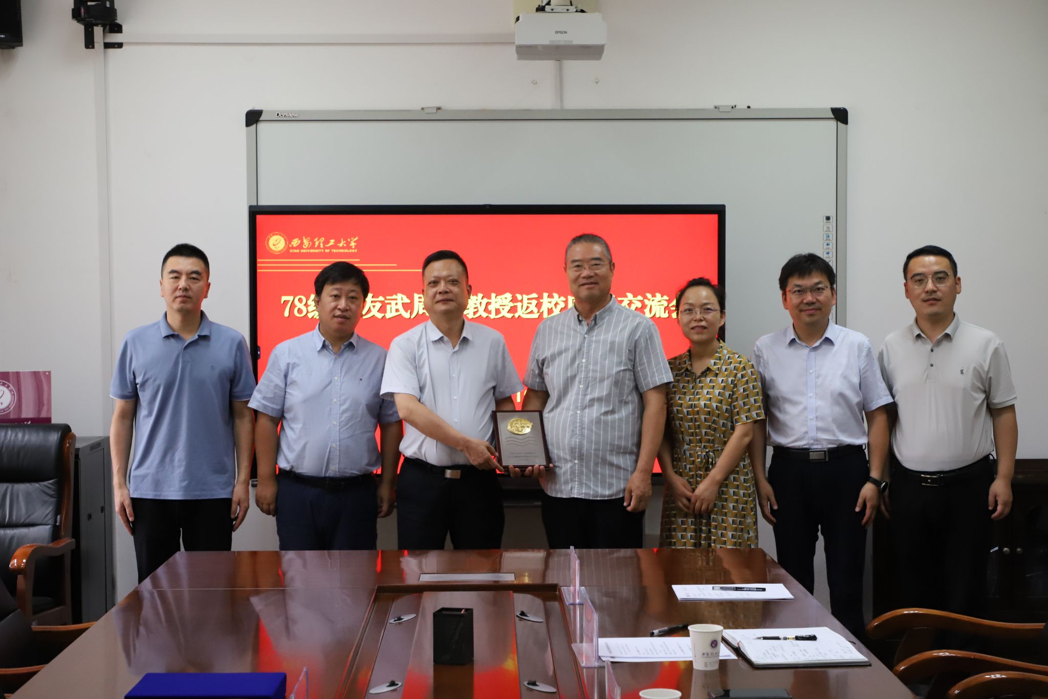 8月16日上午,BEAT365水利水电学院78级校友、青岛理工大学二级教授武周虎返校为学校捐赠“第29届国际水利学大会纪念牌”,校党委副书记张存库出席座谈会,同济大学尹海龙教授,学校宣传部、人事处、国内合作与校友处和水利水电学院负责人参加。