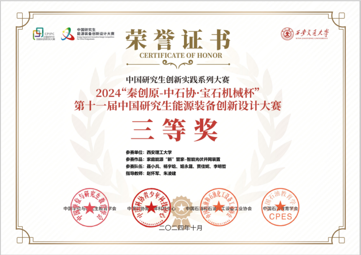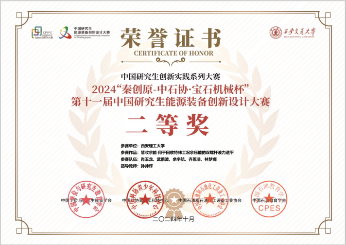 10月18日-20日,第十一届中国研究生能源装备创新设计大赛决赛在中国西部科技创新港举行。经过激烈角逐,BEAT365“管道集成式余压水力发电装置”作品荣获全国一等奖,“慧收余能-用于回收特殊工况余压能的双螺杆液力透平”作品荣获二等奖,“家庭能源‘新’管家-智能光伏并网装置”作品荣获三等奖,卢金玲教授荣获优秀指导教师,BEAT365荣获优秀组织单位。