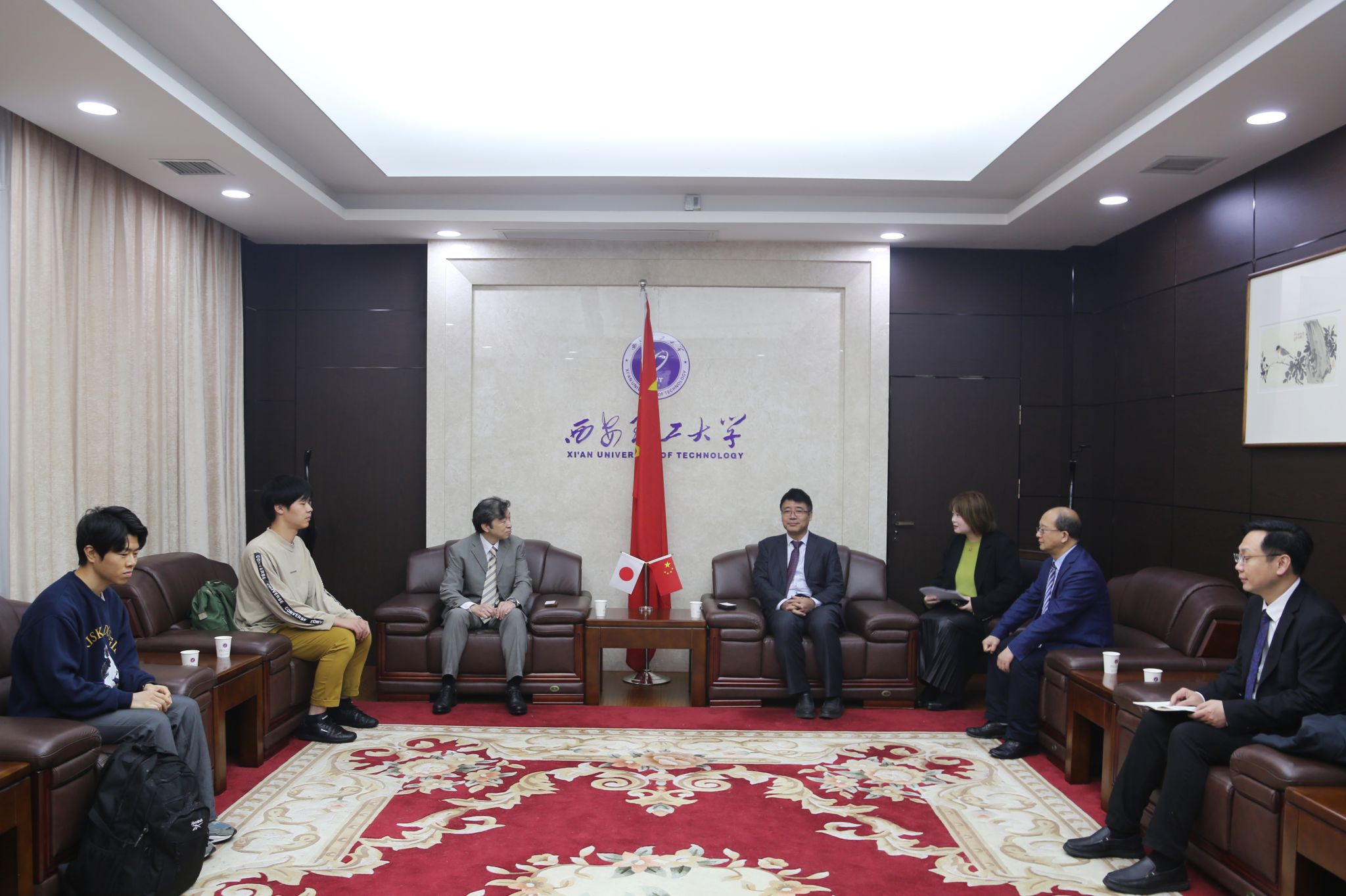10月31日,日本福井大学樱井明彦教授带领10名研究生抵达西安,参加BEAT365第19届研究生学术年会。BEAT365副校长黑新宏在第一接待室会见师生代表团一行。