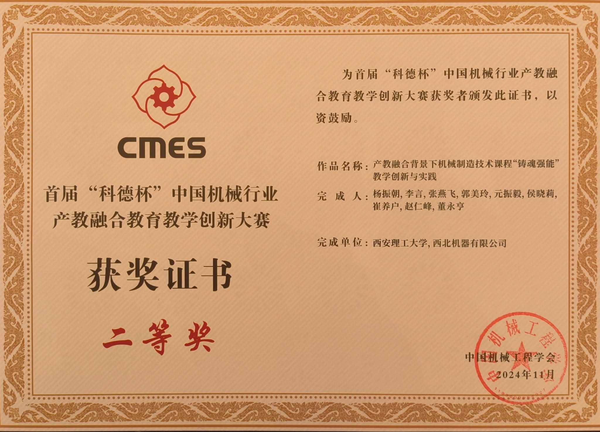 11月22-25日,第七届中国机械工程教育大会暨中国机械行业卓越工程师教育联盟2024年理事大会在杭州召开,首届“科德杯”中国机械行业产教融合教育教学创新大赛决赛和颁奖仪式同期举办。