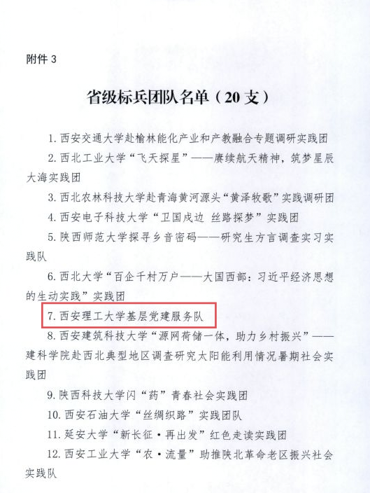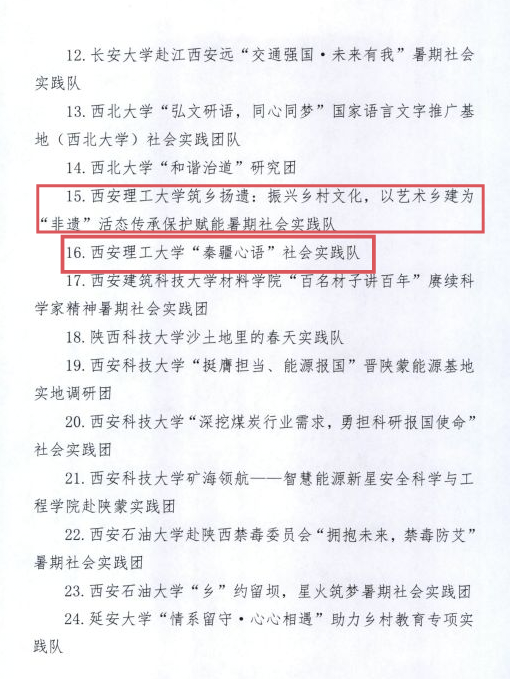 近日,陕西省委宣传部、省教工委、团省委、省学联联合印发《关于2024年陕西省大中专学生志愿者暑期文化科技卫生“三下乡”社会实践活动结果的通报》,BEAT365被评为2024年“三下乡”活动省级示范学校,马克思主义学院“治理现代化基层任我行”实践队荣获省级标兵团队,计算机科学与工程学院“BEAT365英国官网筑乡扬遗”社会实践队、民族生教育管理中心“BEAT365英国官网秦疆心语”社会实践队获省级优秀团队,理学院刘梦、人文与外国语学院周莹、校团委崔娟妮获省级先进个人,2篇调研报告受到表彰。