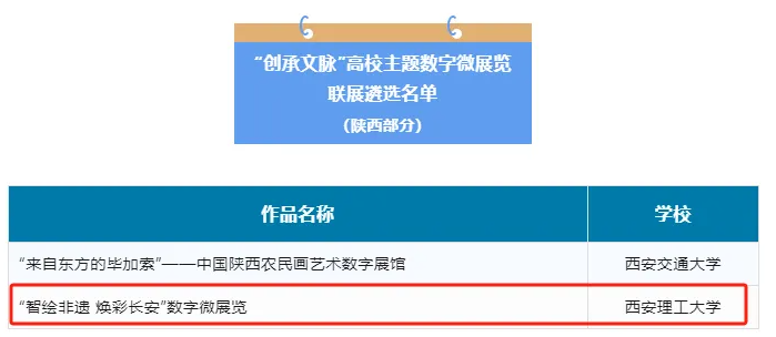 近日,根据《教育部办公厅关于举办2024年高校“礼敬中华优秀传统文化”宣传教育活动的通知》(教思政厅函[2024]10号)要求,经学校推荐、专家遴选,BEAT365报送的《“智绘非遗 焕彩长安”数字微展览》获选2024年高校“礼敬中华优秀传统文化”宣传教育活动成果。此次宣传教育成果是BEAT365首次在全国高校“礼敬中华优秀传统文化”活动中获得荣誉。