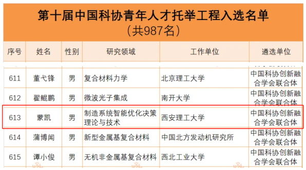 近日,中国科协公布了第十届青年人才托举工程入选者名单,BEAT365机械与精密仪器工程学院蒙凯老师入选。