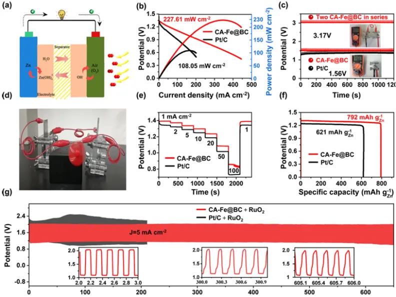 通过透射电镜(TEM)、X射线衍射(XRD)、氮气吸附-脱附(BET)、X射线光电子能谱(XPS)、电感耦合等离子体(ICP)、拉曼光谱、球差校正电镜(STEM)、穆斯堡尔谱及同步辐射X射线吸收谱(XAS)等多维度表征手段,,对C-N自由基在生物质衍生功能碳材料中氧的去除以及原位氮的引入进行了多维度分析。不同的电化学测试方法对其性能进行测试。通过密度泛函理论(DFT)对不同N掺杂构型的计算,为其提供了理论基础。