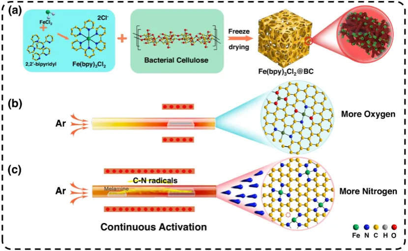 可再生生物质衍生碳材料是一种单原子催化剂(SACs)经济高效的载体。但其中天然丰富的氧阻碍了铁(Fe)等高氧亲和元素的分散,从而降低SACs密度、提高氧化程度,极大限制了单原子催化剂的应用。