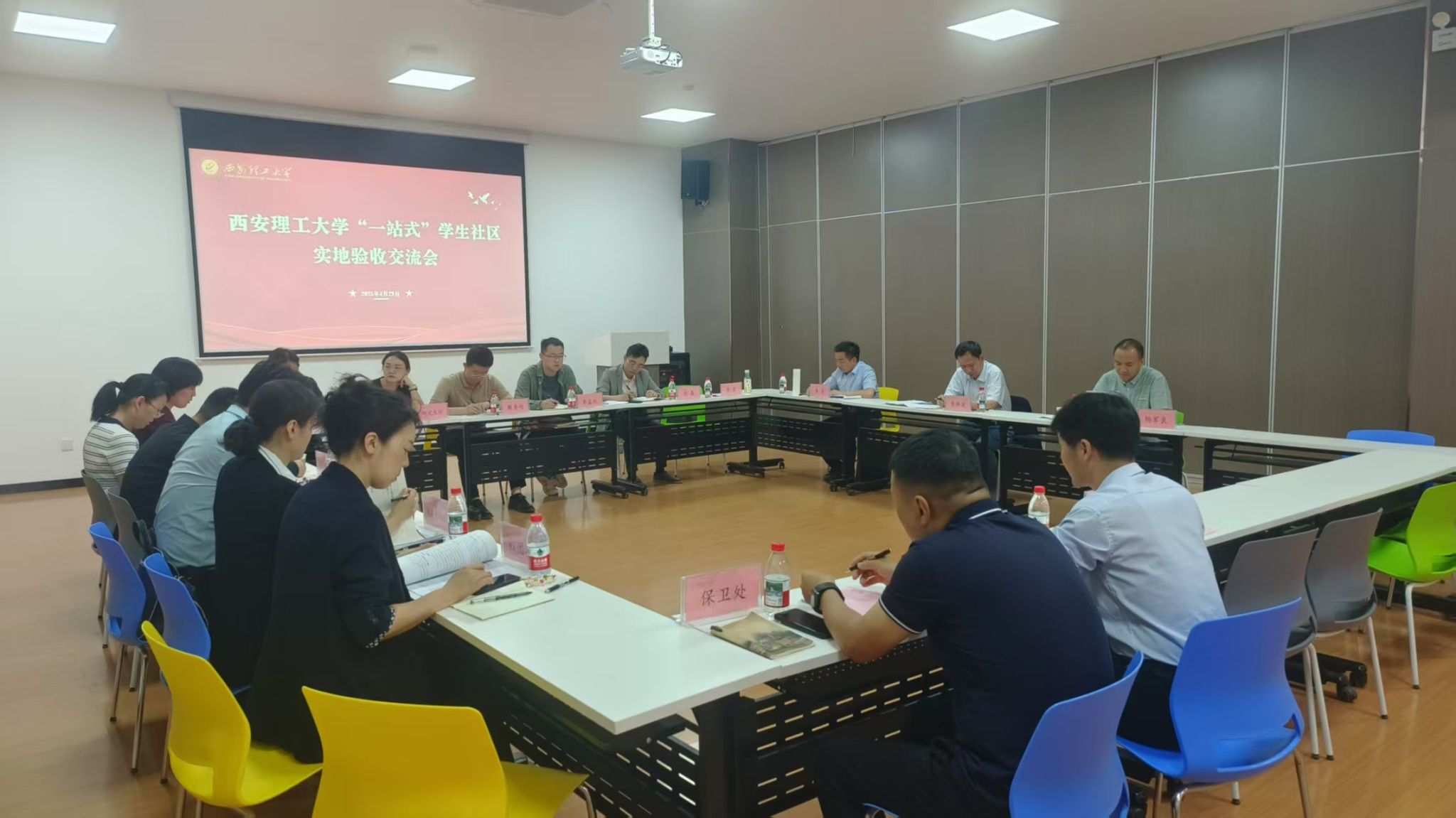 学校“一站式”学生社区综合管理模式建设领导小组成员单位负责人参加了实地验收座谈会。