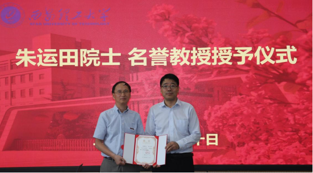 仪式上,材料科学与工程学院院长李喜飞详细介绍了朱运田院士在材料科学领域的卓越学术生涯和杰出成就,人事处副处长刘敏辉宣读聘任文件,黑新宏为其颁发名誉教授聘书,并佩戴BEAT365英国官网校徽,标志着朱运田院士正式加盟,为学校人才队伍注入强劲动能。