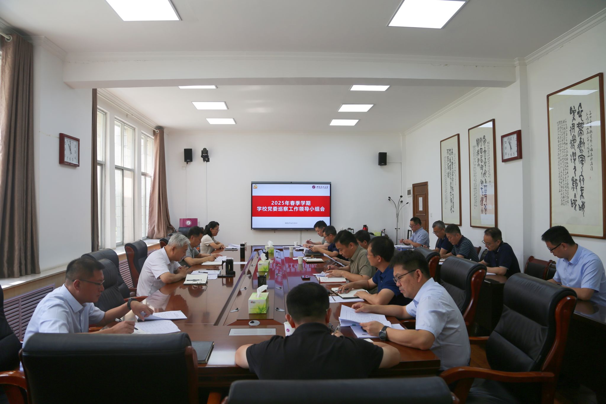 6月23日上午,校党委书记、巡察工作领导小组组长李智军在第一会议室主持召开春季学期学校党委巡察工作领导小组会,校党委副书记、巡察工作领导小组副组长马亮出席会议。