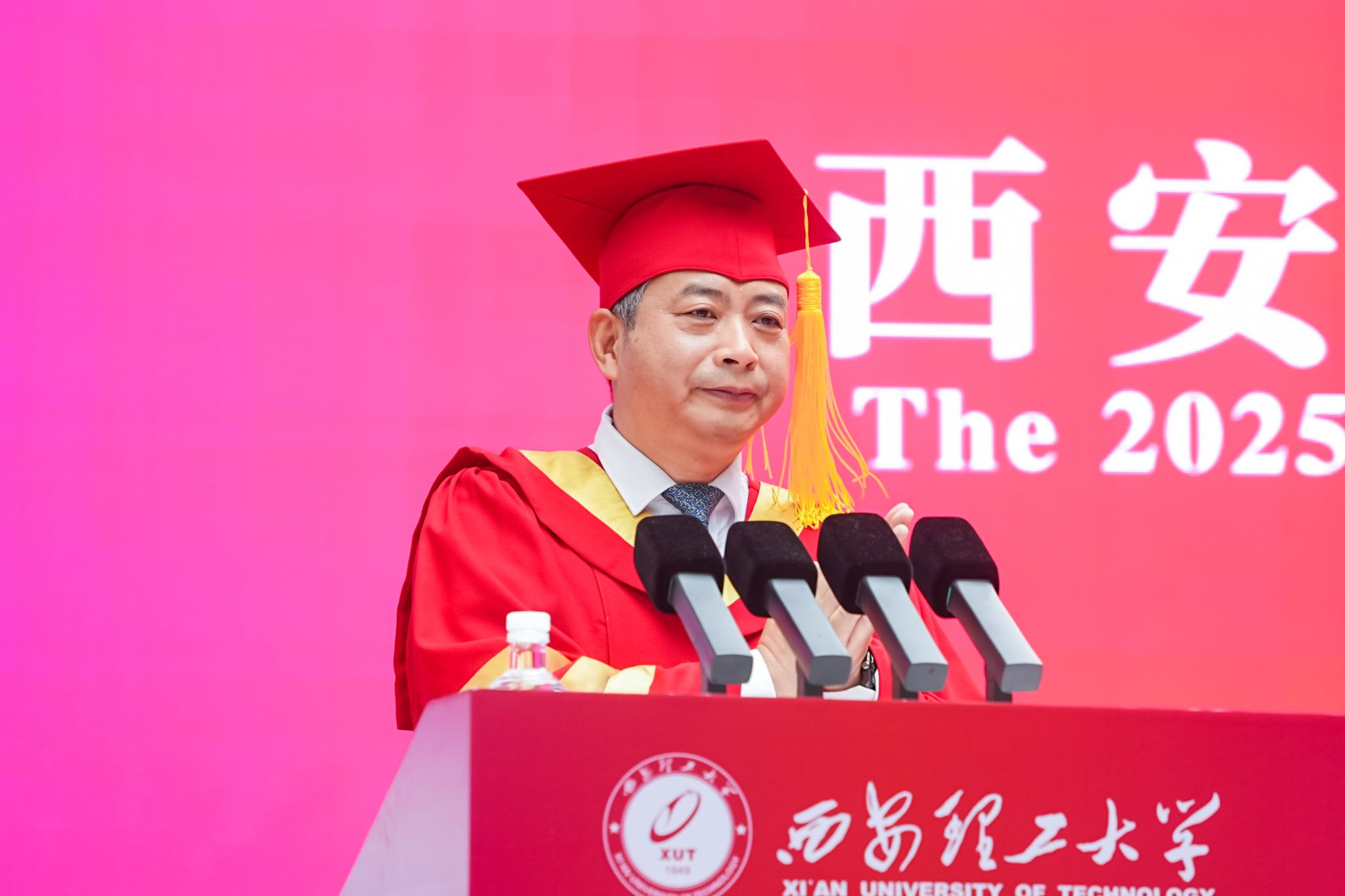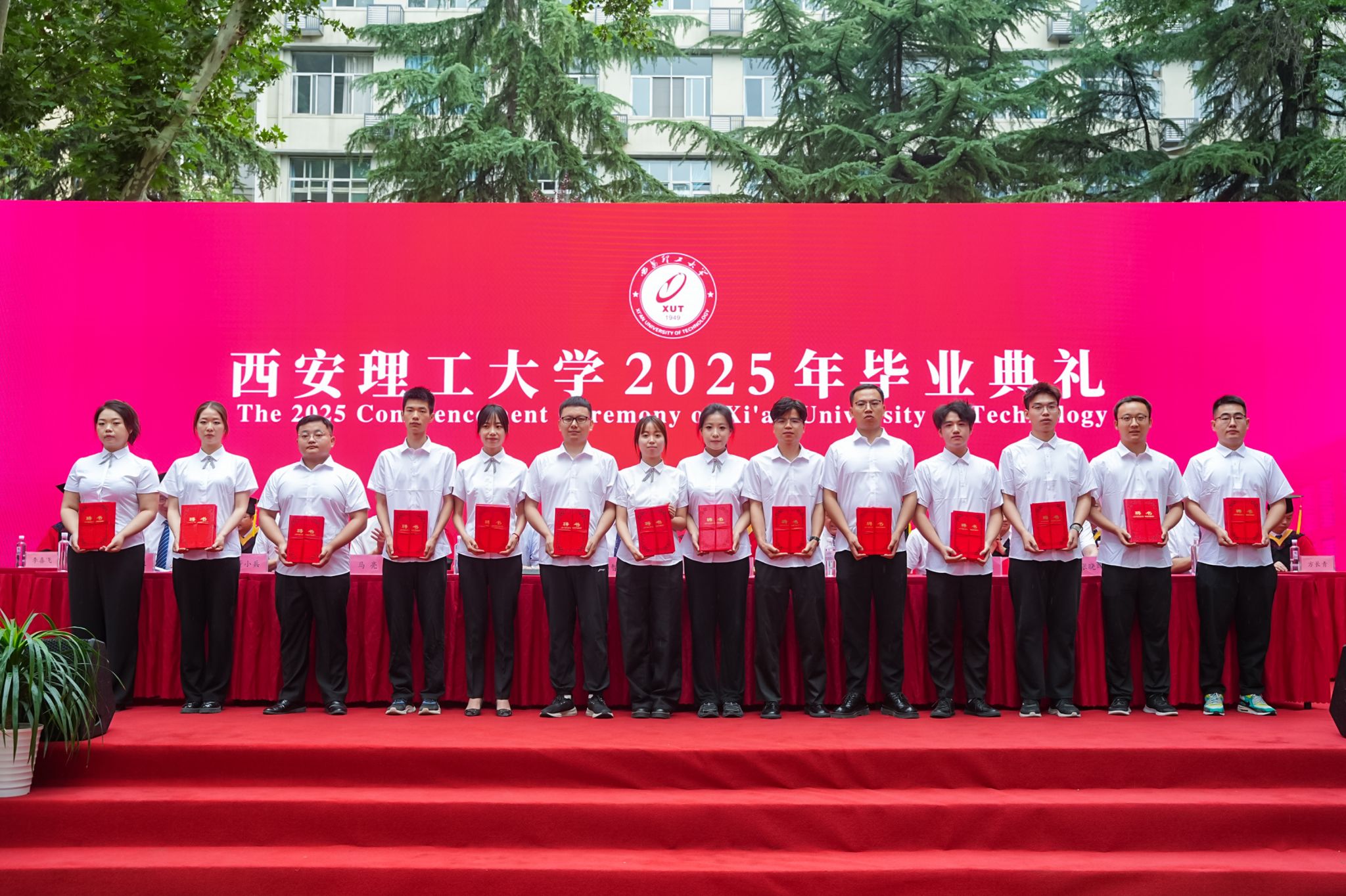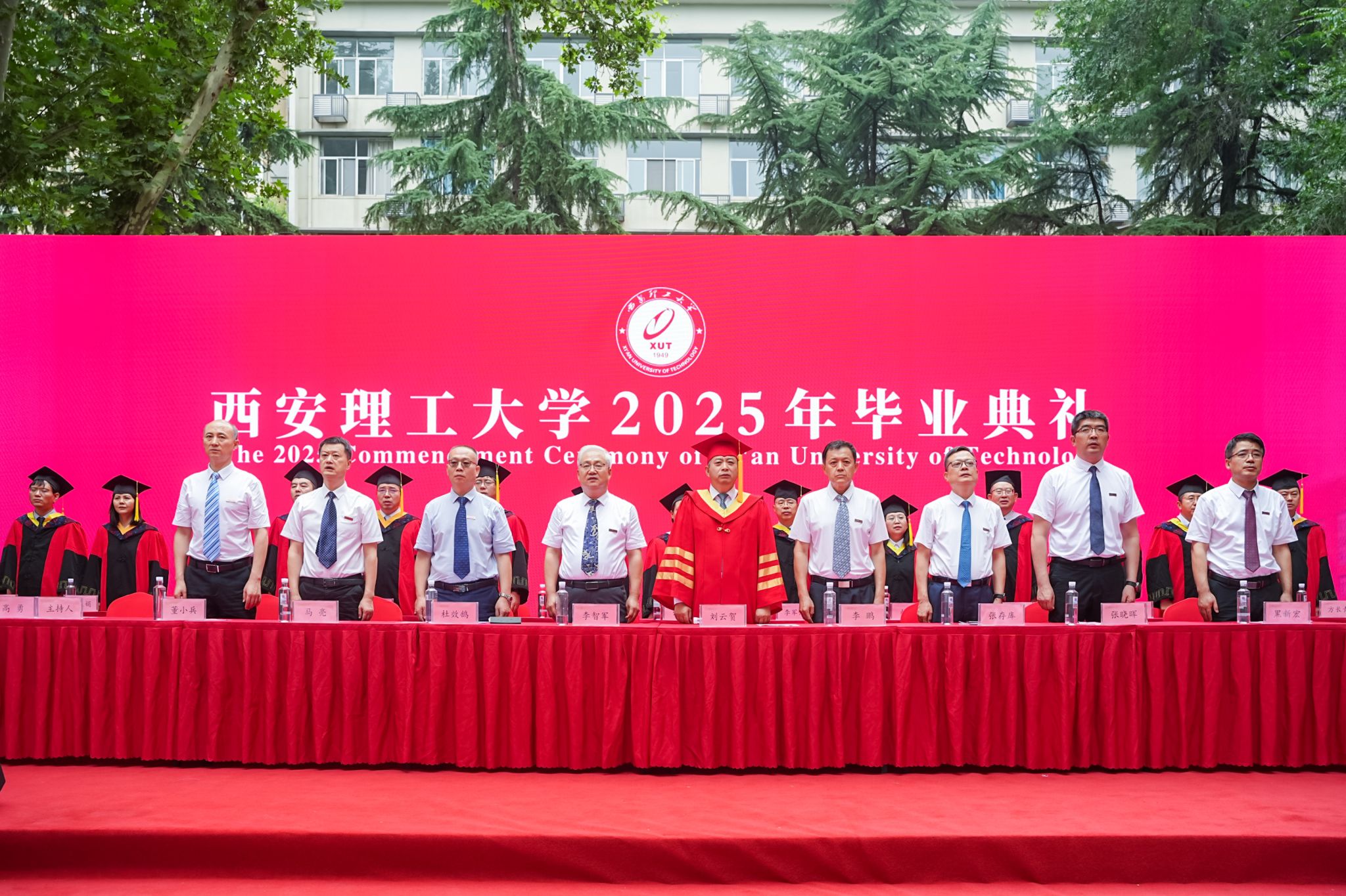 毕业典礼上,黑新宏宣读《2025届研究生毕业决定》《2025届本科生毕业决定》,张存库宣读《关于表彰2025年赴基层、藏疆地区就业毕业生的决定》,与会领导为2025届毕业生代表颁发毕业证书、学位证书,李智军为赴基层、藏疆地区就业学生代表颁发“就业先锋”证书,为“西部计划”志愿者代表授旗,张晓晖宣读《2025届毕业生校友联络员聘任决定》,与会领导为2025届毕业生校友联络员颁发聘书。