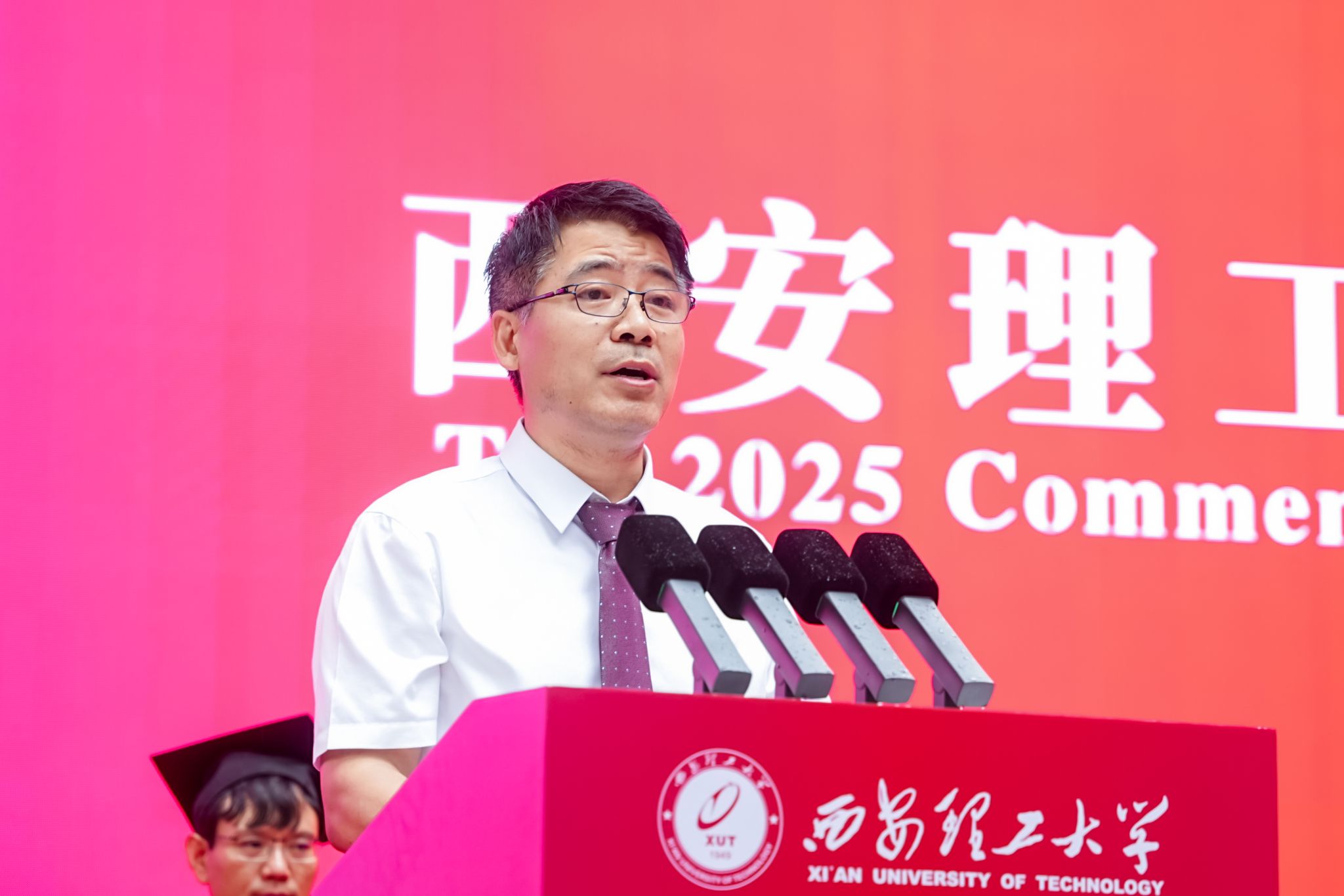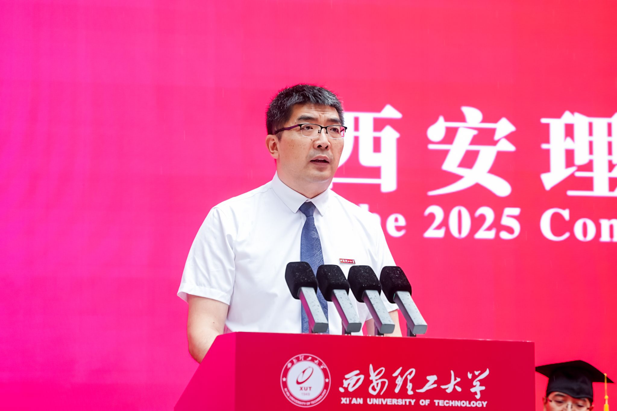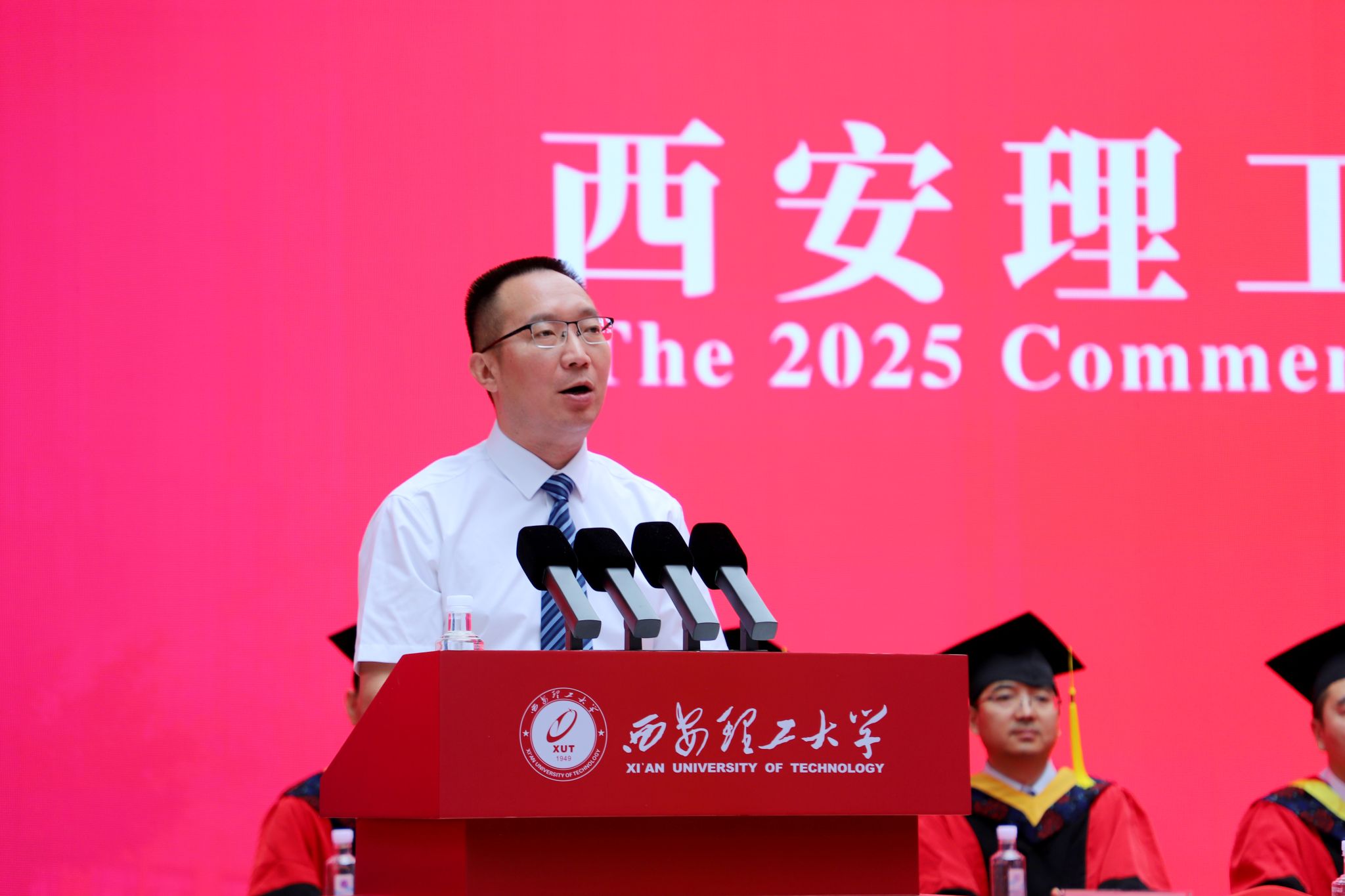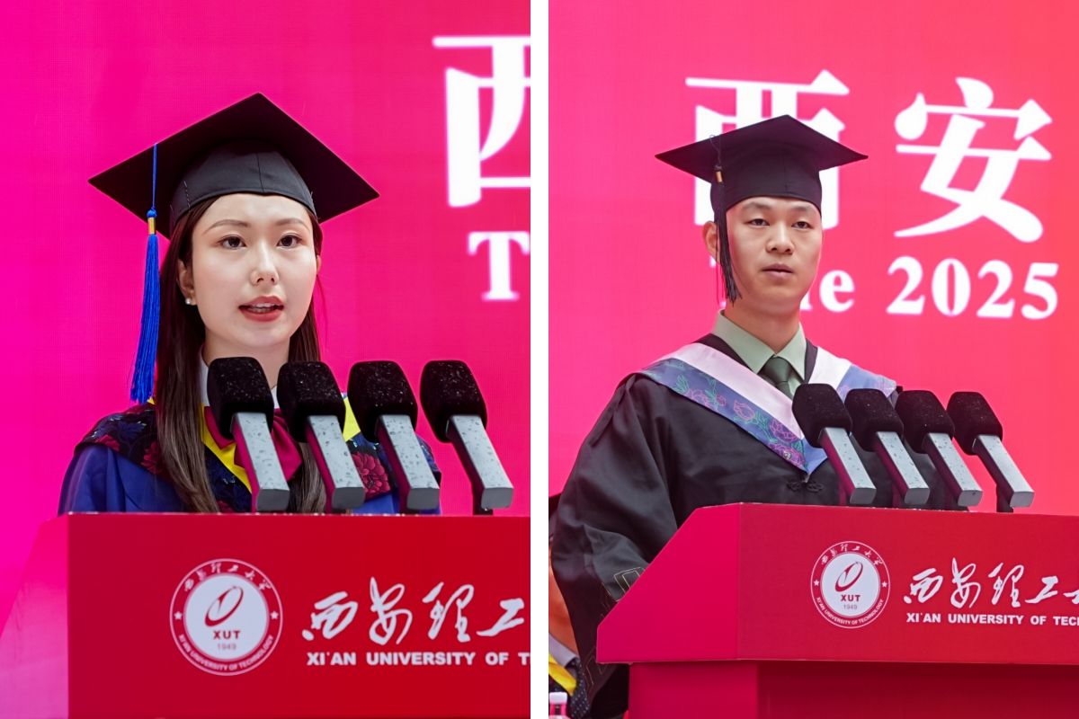 电气工程学院研究生王雪、艺术与设计学院本科生毛义琛分别代表2025届毕业研究生、本科生发言。他们对母校的关心培养和老师们的辛勤付出致以感谢,一致表示将以“艰苦奋斗 自强不息”为精神底色,以“祖国 荣誉 责任”为行动指南,在全面建成社会主义现代化强国新征程上,书写属于西理工人的精彩篇章。