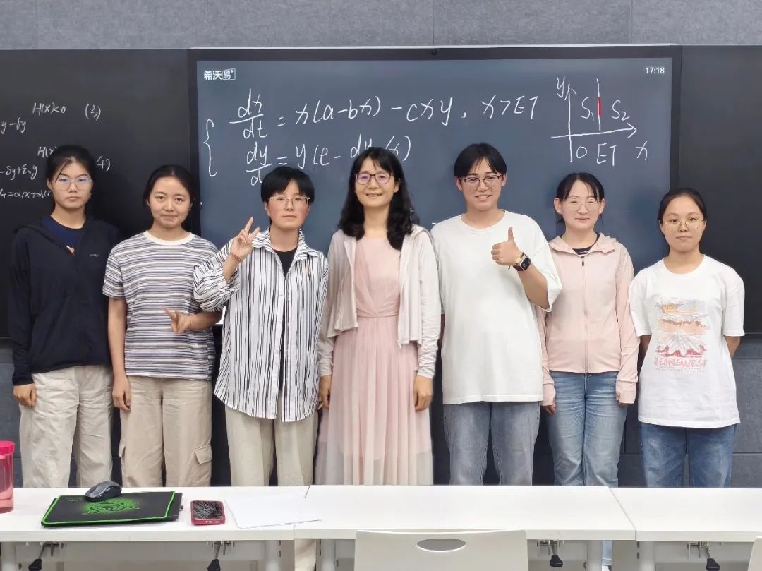 研究生们依次汇报研究进展与暑期计划:研究生杨楠琴聚焦“非光滑捕食-食饵系统”动力学分析,拟开展理论分析与数值模拟。研究生吕乙敏完成了流感的数据收集和统计分析工作,并从数据来源的可靠性、数值精度及模型选择等方面进行了统计分析。研究生刘思宇目前的工作聚焦于传染病的传播建模,创新性地融合机理驱动方法与数据驱动方法。博士生刘雪茹研究聚焦于Filippov系统中时滞效应对系统动力学的影响。博士生白朵主要从事传染病建模与模型参数估计的相关工作,目前已完成模型构建和数据收集,将进行模型的动力学分析、数值模拟。