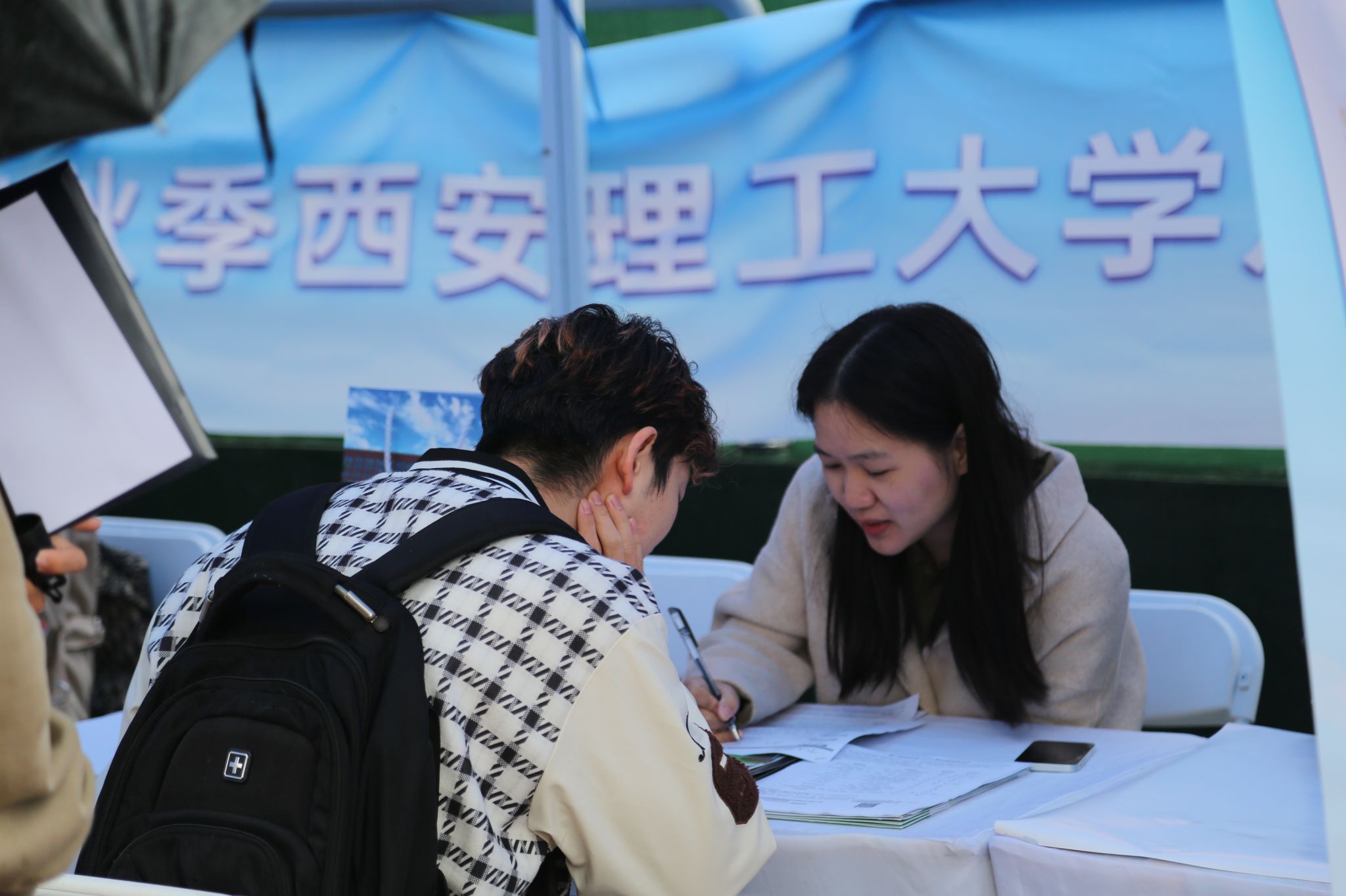 本次活动在陕西省教育厅的指导下开展,共吸引了来自全国19个省(自治区、直辖市)的350家企事业单位参加,涵盖了制造业,建筑业,信息传输、软件和信息技术服务业,科学研究和技术服务业,电力、热力、燃气及水生产和供应业等行业,提供岗位超过1万个,参会学生5000余人,学生投递简历12000余份。福建厦门、泉州,四川攀枝花等省市人社部门组织优质企事业单位参会,现场向毕业生介绍当地人才政策,邀请毕业生去实地感受当地的人文环境和经济发展情况。现场还设置了航天基地专区和军工企业专区,为毕业生提供多元化就业选择。活动现场淅淅沥沥的小雨,依然挡不住学生们求职的热情,学生们积极与参会单位交流,展现出对未来职业发展的渴望和期待。