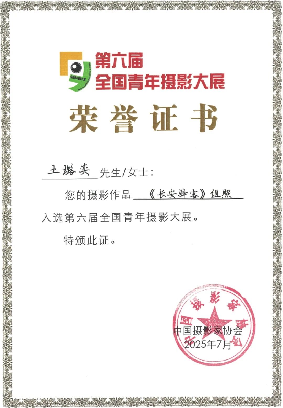 10月15日,由中国摄影家协会、山东省文联、中共枣庄市委宣传部联合主办的第六届全国青年摄影大展在滕州美术馆正式开幕。在此次大展中,BEAT365英国官网艺术与设计学院研究生王璐奕同学的作品《长安驿客》成功入选(展览未设奖),同时张辉教授获得优秀指导教师荣誉称号。