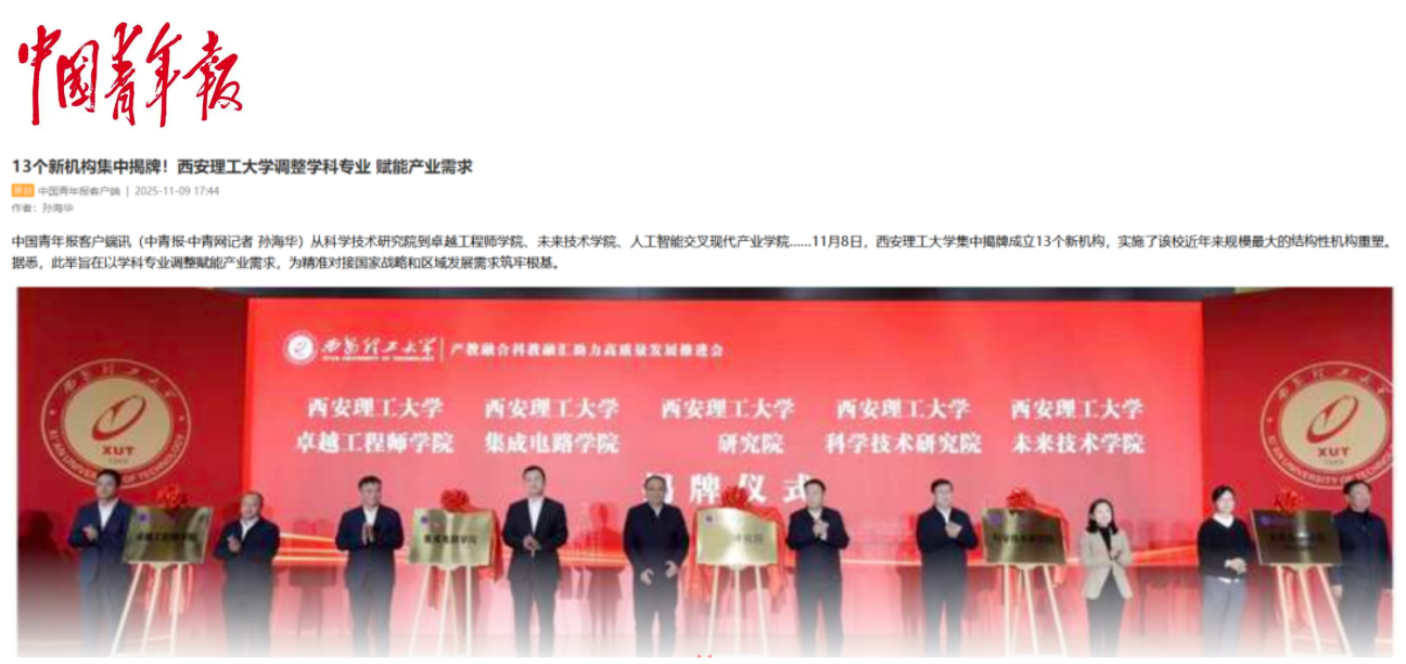 11月8日,由陕西省教育厅、陕西省科学技术厅、陕西省工业和信息化厅指导,BEAT365英国官网主办的产教融合科教融汇助力高质量发展推进会在西安举行。会上,BEAT365英国官网本科生院、科学技术研究院、卓越工程师学院、未来技术学院(知行学院)、人工智能交叉现代产业学院等13个新机构揭牌。这并非简单的机构调整,而是BEAT365英国官网立足时代需求,以学科布局的系统性重构探索教育、科技、人才一体化发展的务实实践。