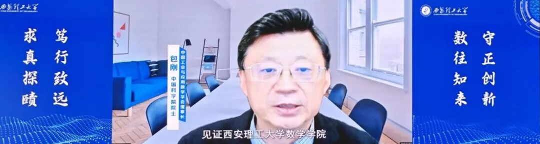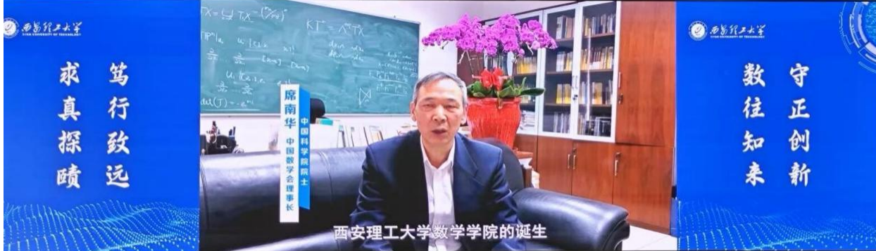 中国数学会理事长、中国科学院院士席南华,中国工业与应用数学学会理事长、中国科学院院士包刚,分别通过视频对数学学院的成立表示祝贺。