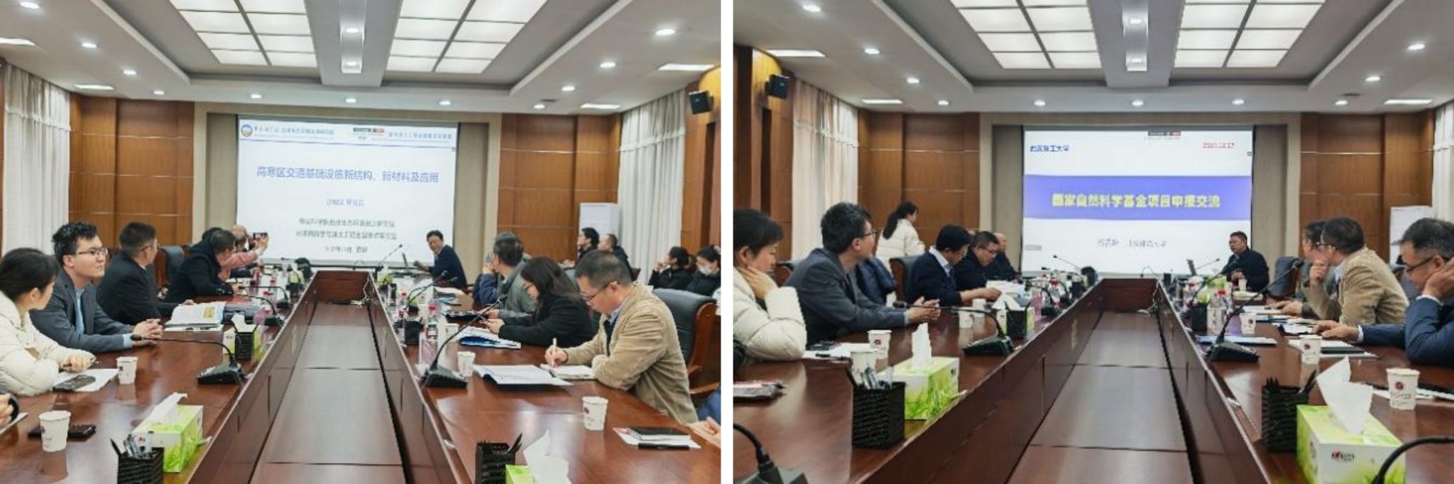 特邀报告会由党发宁主持,会议共进行了两场特邀学术报告,分别由张明义和齐吉琳作题为《高寒区交通基础设施新结构、新材料及应用》《国家自然科学基金项目申报交流》的报告。参会教师与报告人进行了讨论交流。