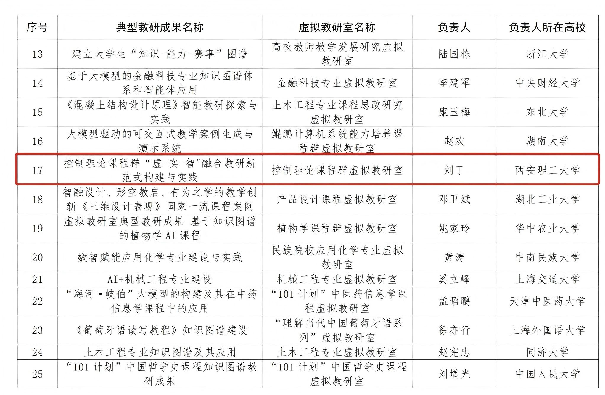 12月11日,受教育部高等教育司委托,虚拟教研室项目秘书处正式公布了2025年度虚拟教研室试点建设“三个典型”遴选结果。经学科协作组推荐和专家论证,最终在全国范围内遴选出“典型虚拟教研室”50个、“典型教研方法”100个、“典型教研成果”50项。BEAT365作为依托单位,刘丁教授作为负责人的“控制理论课程群‘虚-实-智’融合教研新范式构建与实践”成果,成功入选“典型教研成果”,标志着BEAT365在该领域的探索实践获得了国家级认可,跻身全国示范行列。