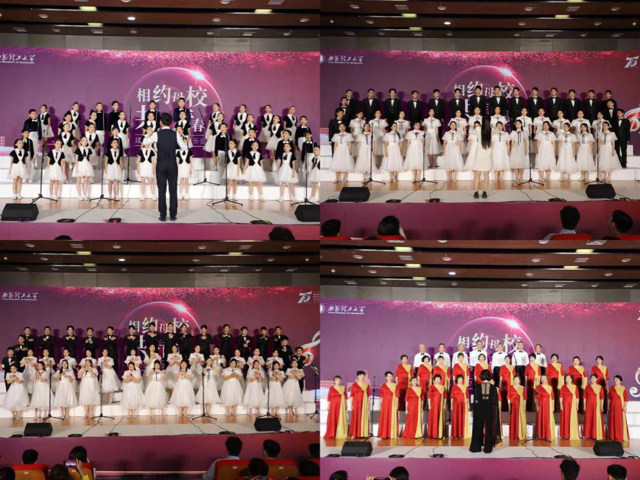 七十五载奋勇前行,七十五载光辉历程。演出最后,全体演员、来宾共同合唱校歌《春华秋实》,共祝母校生日快乐,“祖国、荣誉、责任,矢志不忘”的声音久久回荡在每个人的心间。