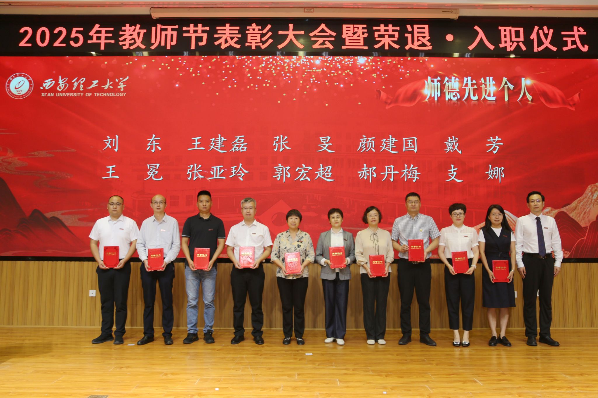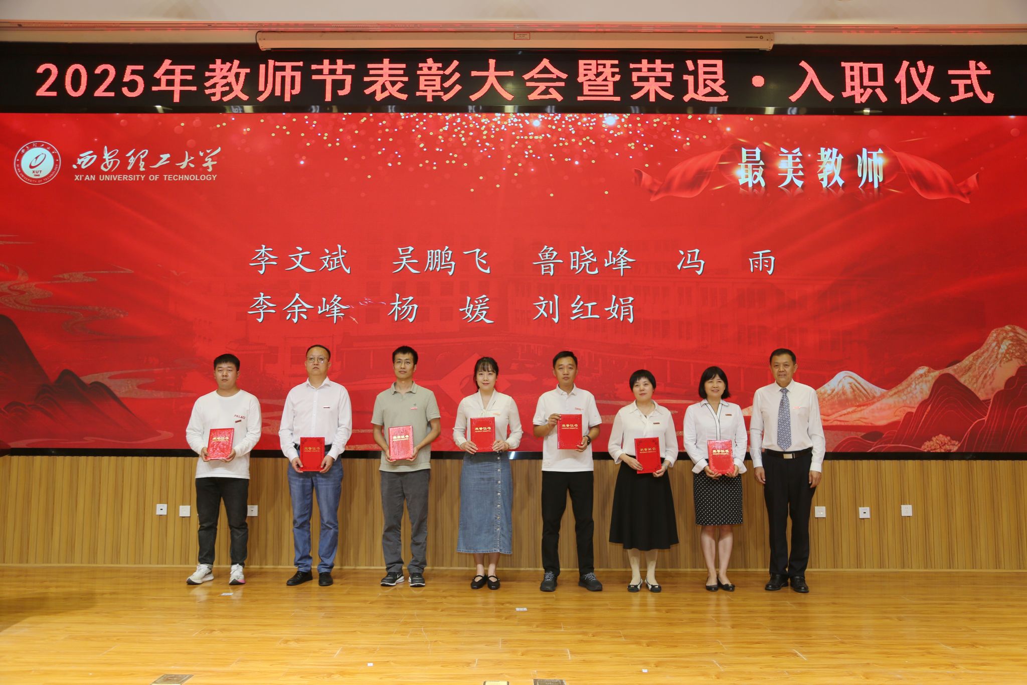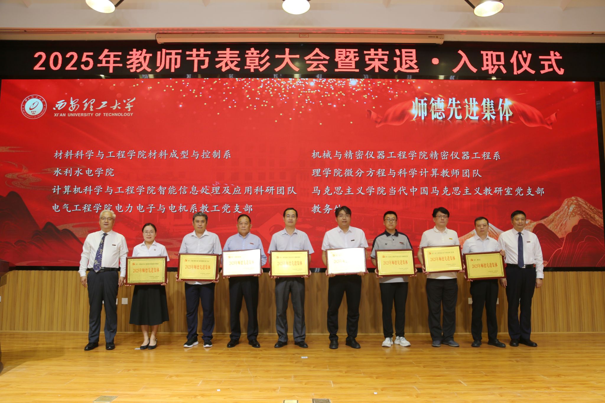 在校校领导,受表彰的师德先进集体和个人、荣退教职工代表、新入职教师、校属各单位负责人、科级干部和学生代表等300余人参加会议。