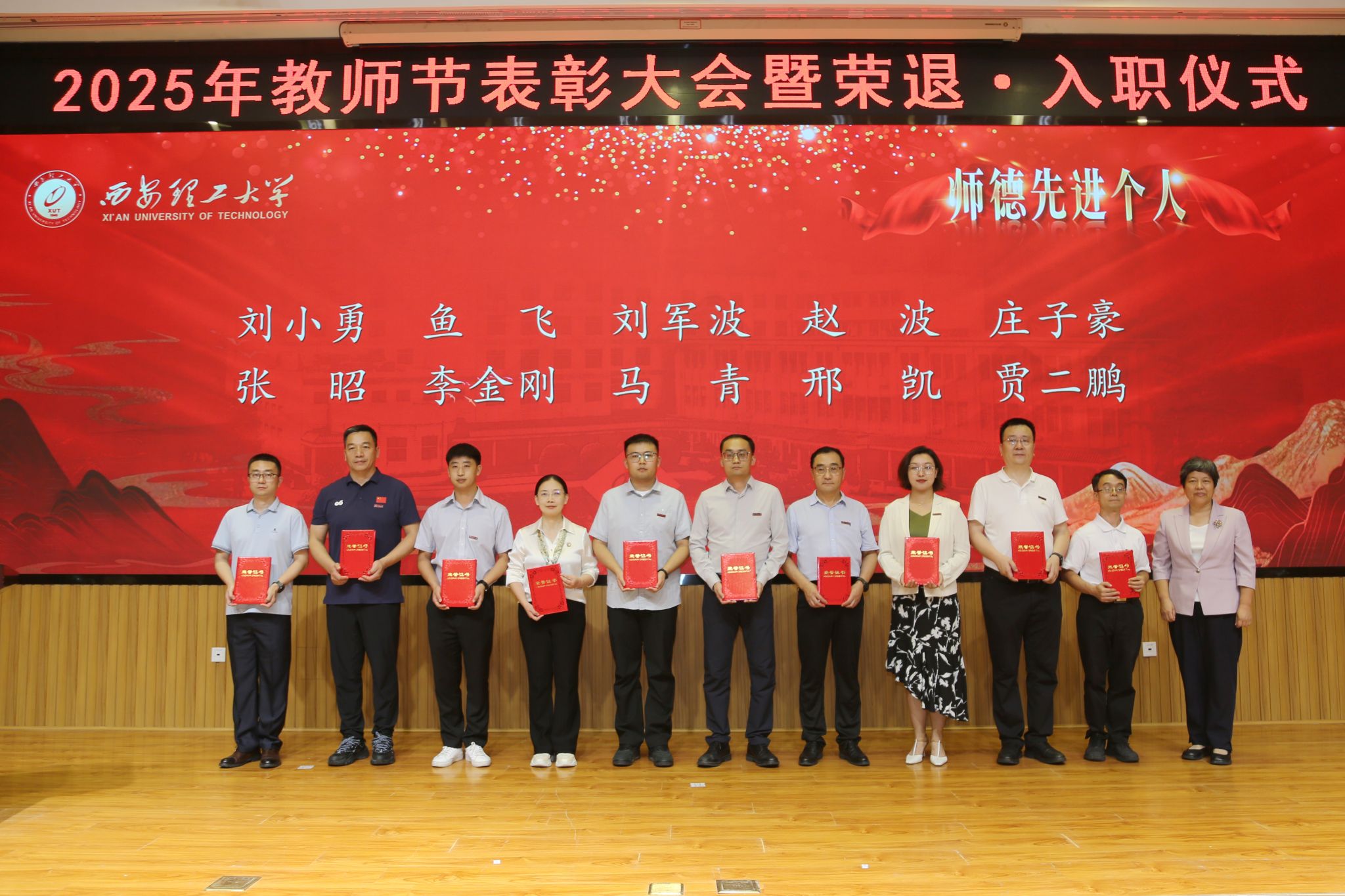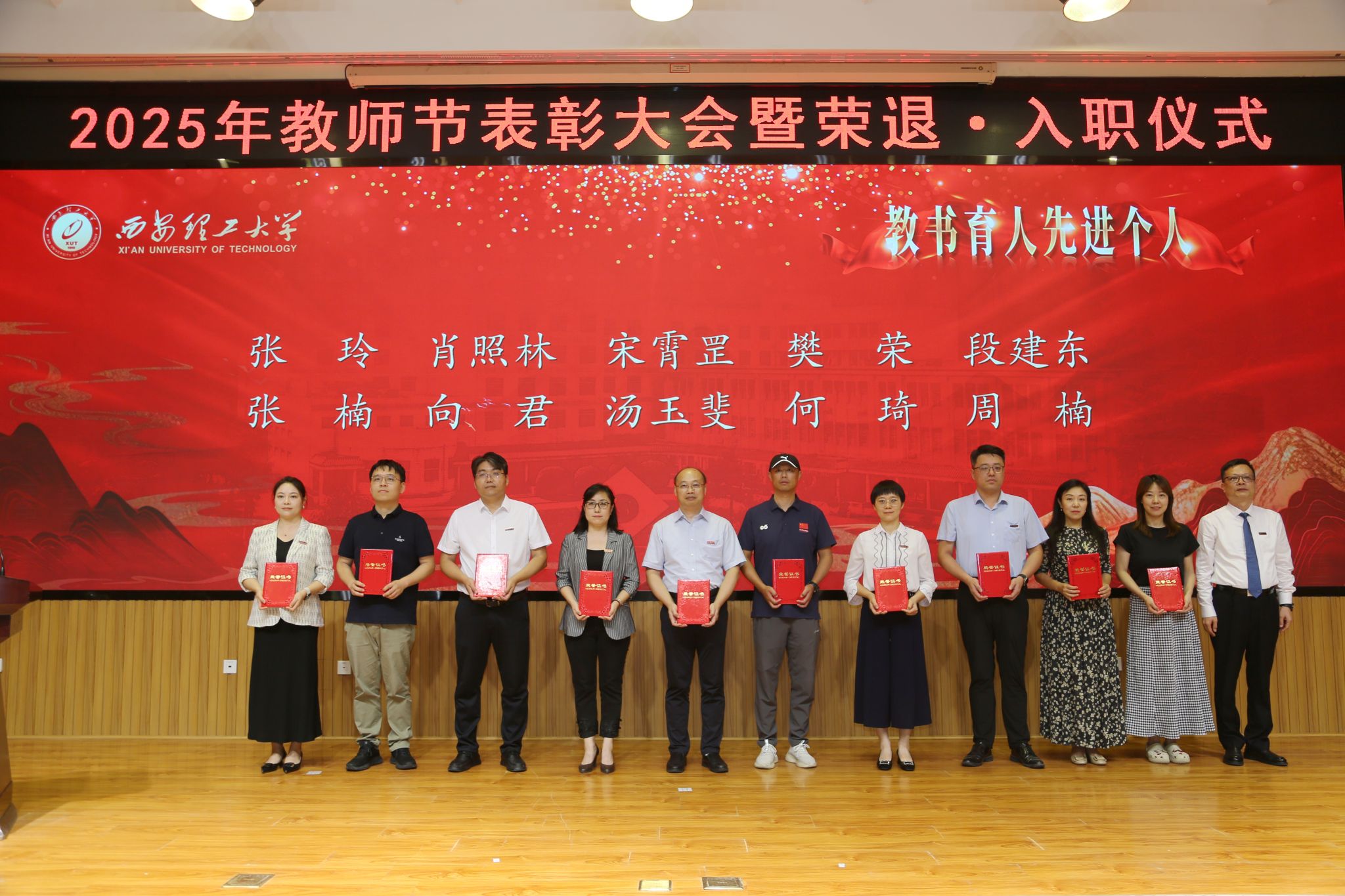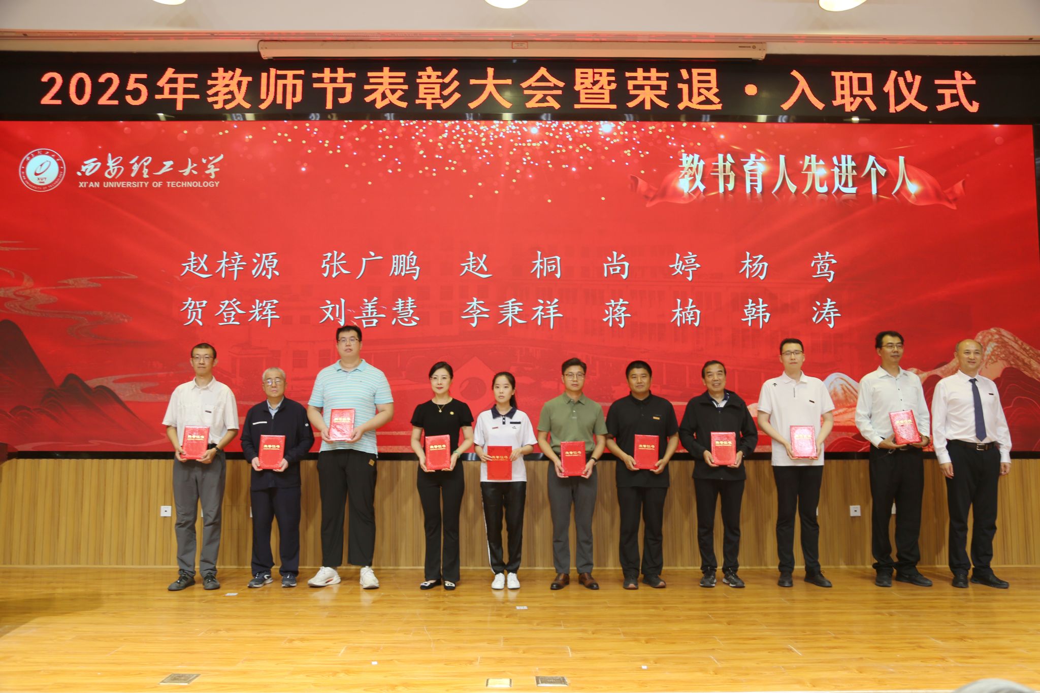 李智军代表学校党委向全校教职员工致以节日的祝福和诚挚的问候,对受到表彰的先进集体和个人表示衷心的祝贺,向全体教职员工一年来的辛勤付出致以由衷的感谢。他指出,过去一年,学校各项工作全面起势,多项成绩在全省高校名列前茅、取得了新的突破,受到了各方的肯定与好评,这些成绩凝聚着全校教职员工的心血和汗水,映衬着每一位教职员工的辛勤付出!他强调,要大力弘扬教育家精神,使其成为广大教育工作者的行为规范,更好地“传道授业解惑”,真正担负起价值传承和发展的使命,肩负起时代赋予的重任;要践行“四有好老师”标准,主动对标“大先生”要求,坚持“四个相统一”,将其内化于心、外化于行,涵养扎实的学识功底和终身学习的态度,以德立身、以德立学、以德施教,成为学生道德修养的楷模;要持续深化师德师风建设,正视问题、查找差距,加强自律自省,以《新时代高校教师职业行为十项准则》为遵循,坚守教育初心、坚持底线思维、常怀敬畏之心,杜绝学术不端与师德失范;要构建全方位、多层次的教师发展支持体系,充分发挥党的领导引领力、考核评价的导向力、服务保障的助推力,促进教师职业成长,打造高素质专业化创新型教师队伍。