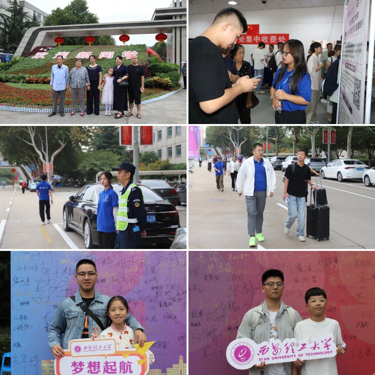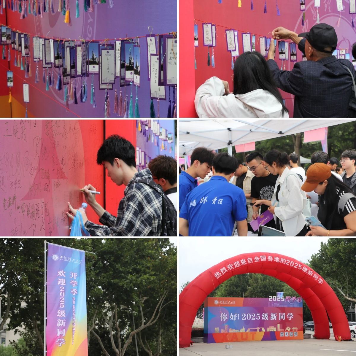 为保障迎新工作既有“效率”又有“温度”,学校提前谋划、周密部署,召开专题会议,制定完善2025级新生报到方案,确保各项保障措施落实到位。迎新现场,拱门矗立、红幅高挂、旗帜飘扬,到处洋溢着热烈喜庆的氛围。迎新工作人员各司其职、通力合作,从引导咨询到手续办理,各项工作高效有序。智慧迎新系统实时统计新生报到数据并通过大屏公布,让报到进度一目了然,大幅提升信息统计效率;各学院延续暖心传统,继续为新生准备各具特色的新生礼包;报到现场布置了新生签名墙、寄语卡片悬挂处,新生在此写下对大学生活的目标与期待;组织招募千余名学生志愿者参与迎新工作;在学校各个点位为家长设置临时休息点。细节之处尽显西理工的人文关怀。