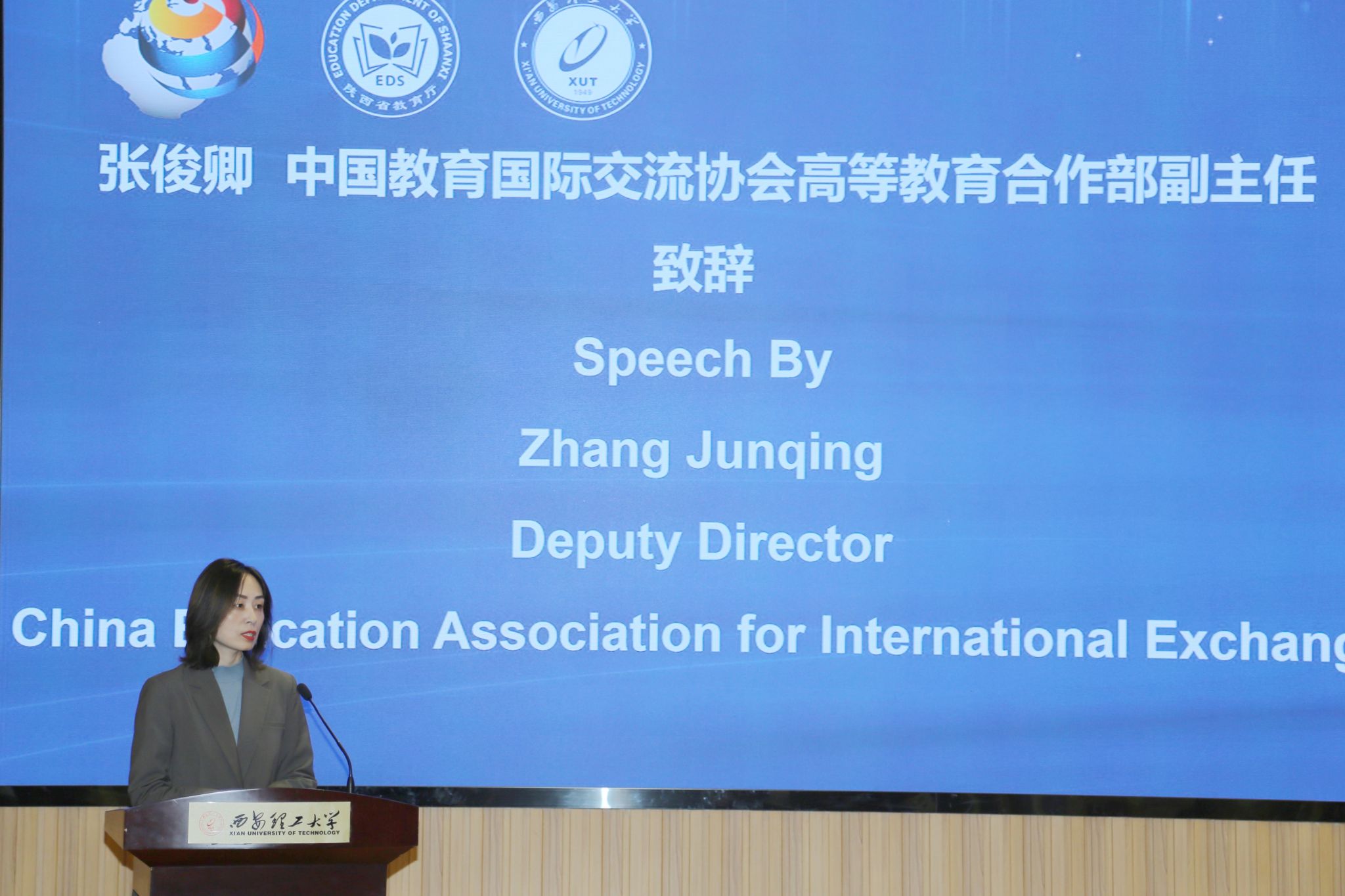 中国教育国际交流协会高等教育合作部副主任张俊卿、保加利亚色雷斯大学校长米罗斯拉夫・卡拉巴利耶夫、陕西省教育厅对外合作与交流处处长文通、BEAT365英国官网副校长张晓晖出席活动并致辞。会议由BEAT365英国官网国际合作与交流处处长杨媛主持。