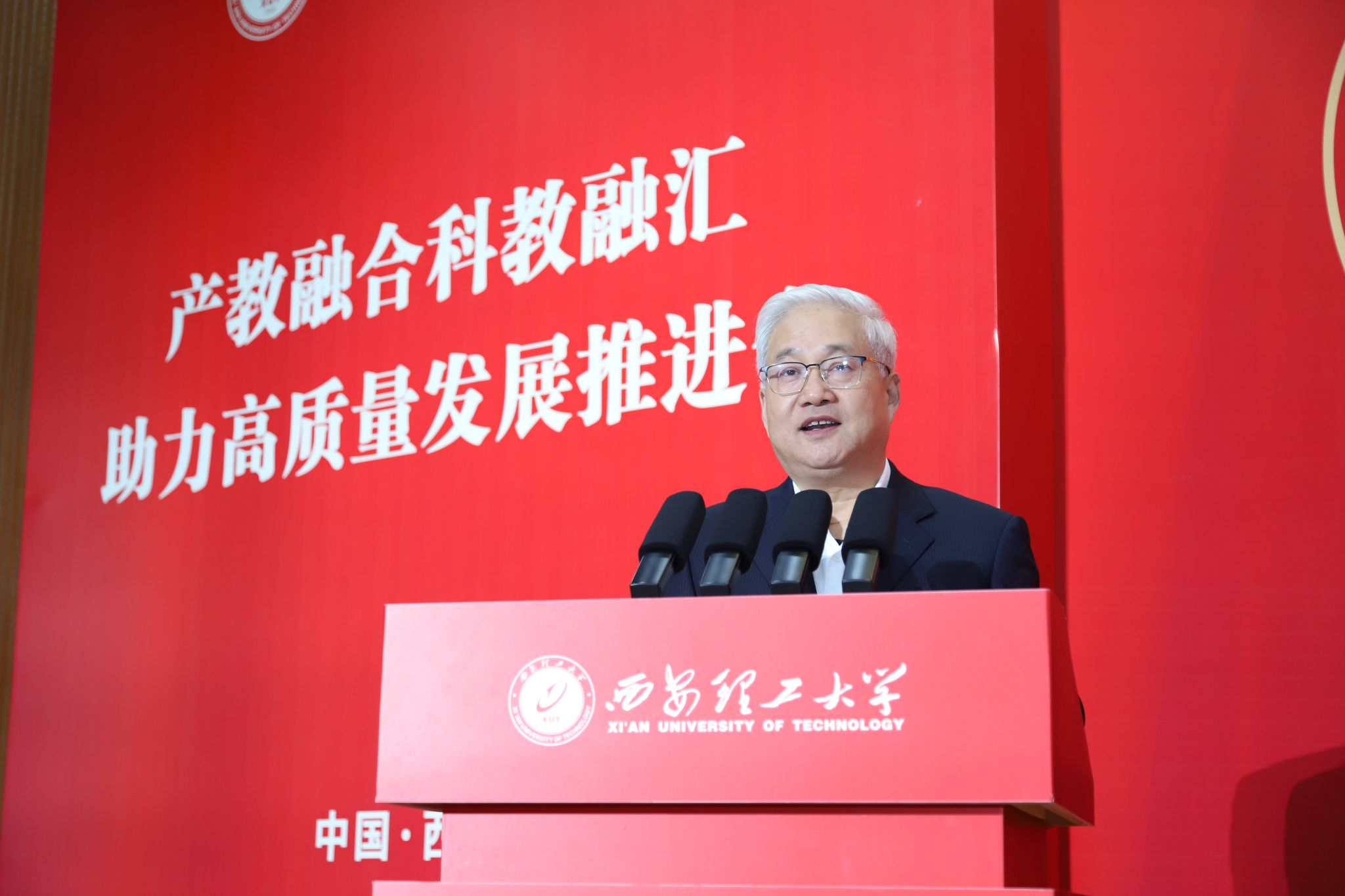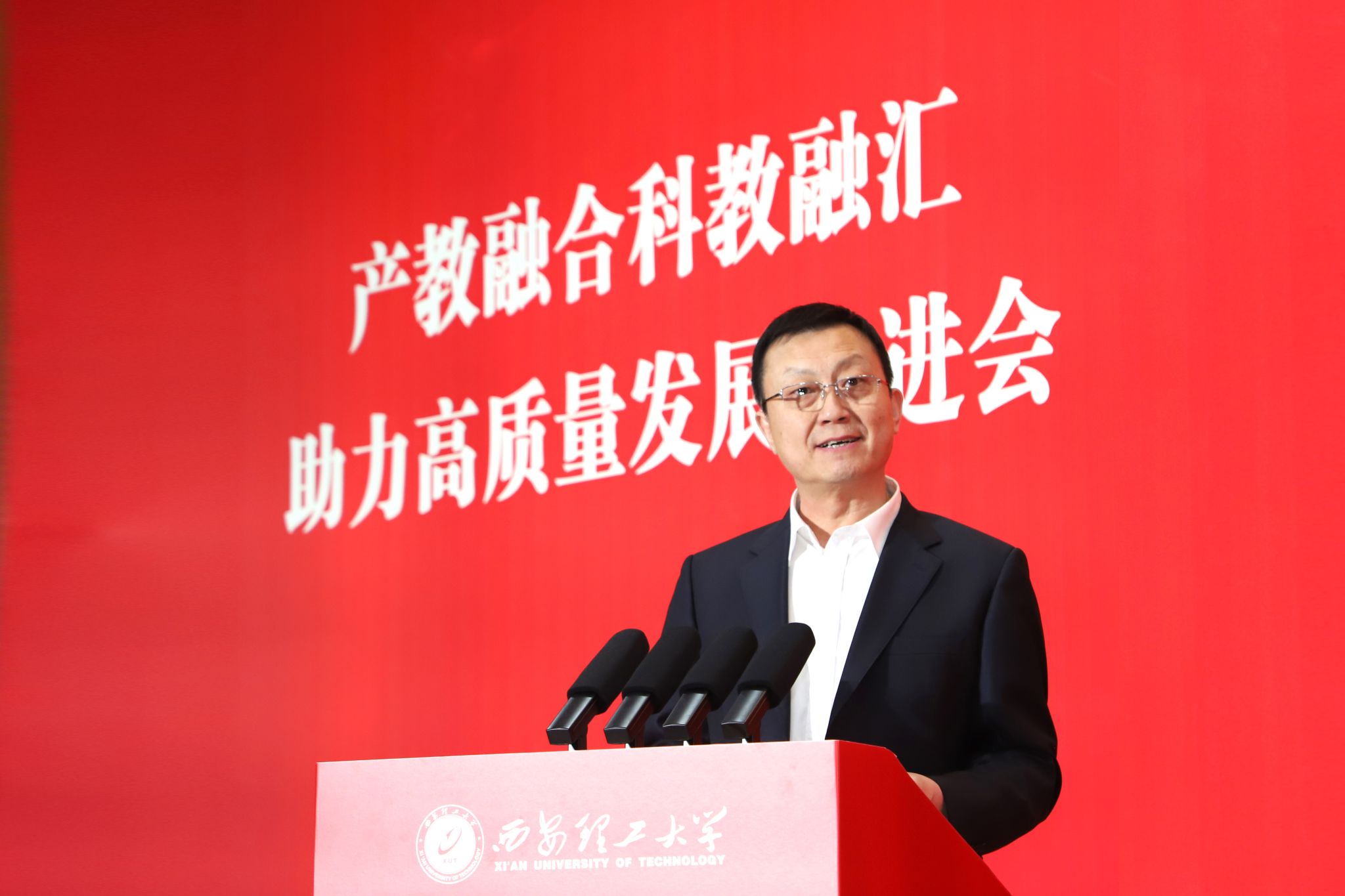 刘云贺致欢迎辞,他从办学定位、综合实力、学科专业优势和产教融合成效等方面介绍了学校基本情况。他表示,作为立足西北、服务国家的省属高水平大学,学校始终以优势学科为支撑、以产教融合为路径,在人才培养、科技创新、服务社会等方面形成了鲜明特色与突出优势。此次成立新机构,是学校顺应新时代高等教育变革的务实之举,是推动办学治校向纵深迈进的战略调整,是构建产学研用深度融合的关键支撑。学校将以开放姿态整合优质资源、创新育人模式、加速成果转化、促进“四链”融合,为谱写中国式现代化建设的陕西新篇章注入强劲动能。