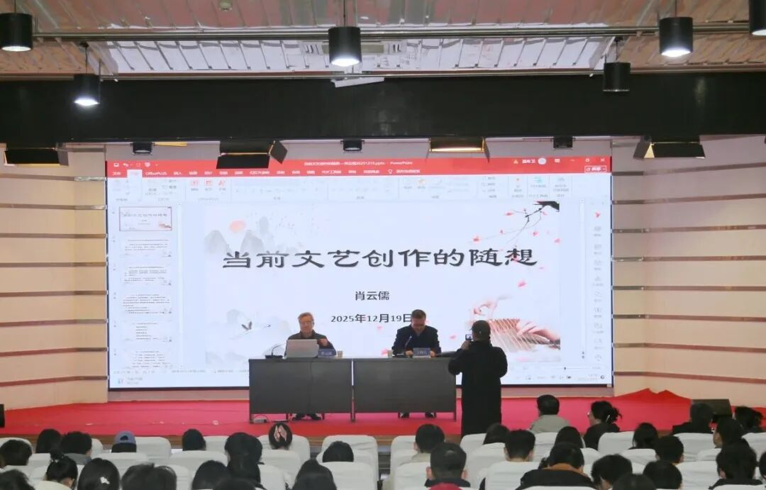 揭幕仪式结束后,素质大讲堂首场报告会随即开讲。肖云儒以“文艺创作的思考和实践”为主题,结合自身丰富的创作经历与深刻的理论感悟,为现场师生带来了一场兼具思想深度、文化底蕴与实践指导意义的精彩报告,引发师生广泛共鸣。