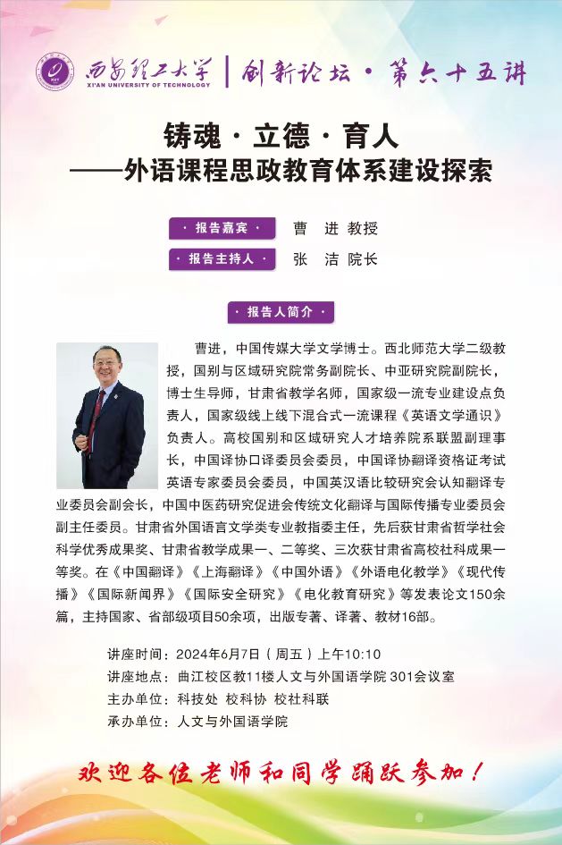 【人文雅韵】西北师范大学曹进教授学术报告通知