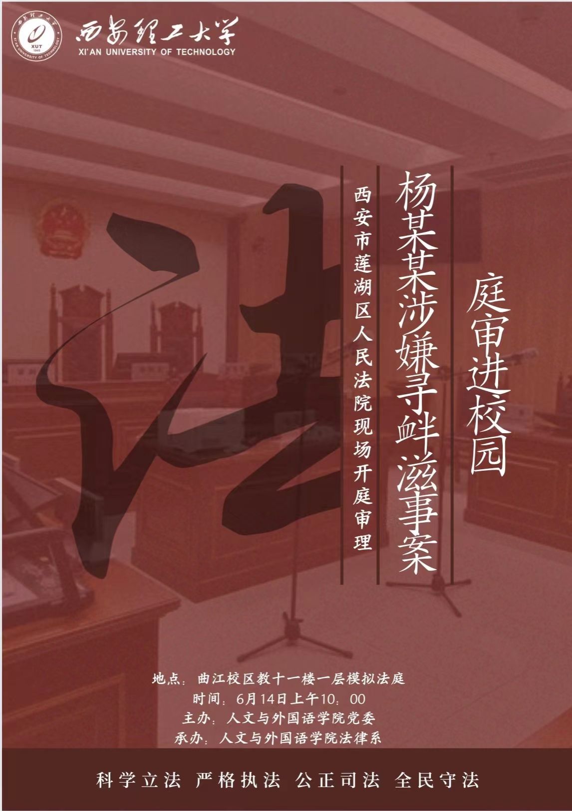 【人文雅韵】庭审进校园:西安市莲湖区人民法院来BEAT365开庭审理“杨某某涉嫌寻衅滋事罪案”