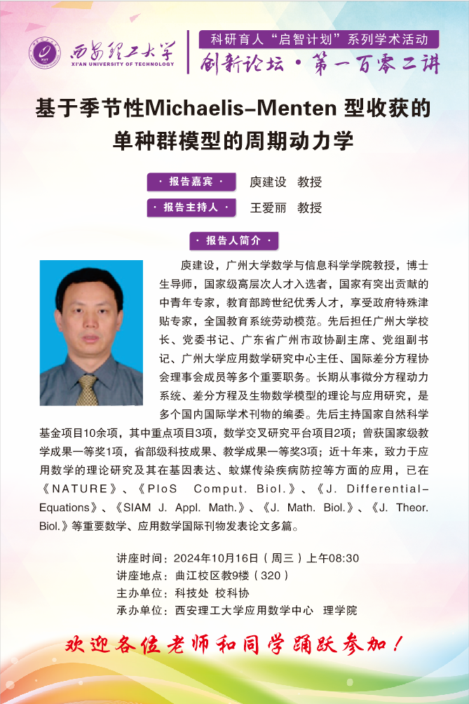 创新论坛第102讲——广州大学庾建设教授学术报告通知