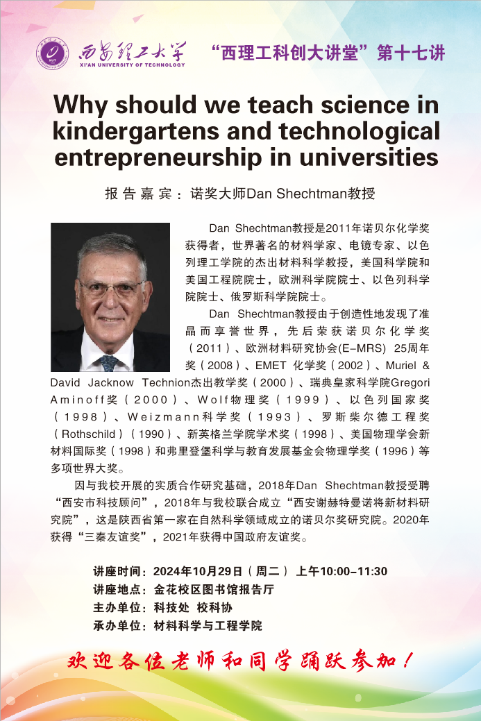 西理工科创大讲堂第17讲——Why should we teach science in kindergartens and technological entrepreneurship in universities