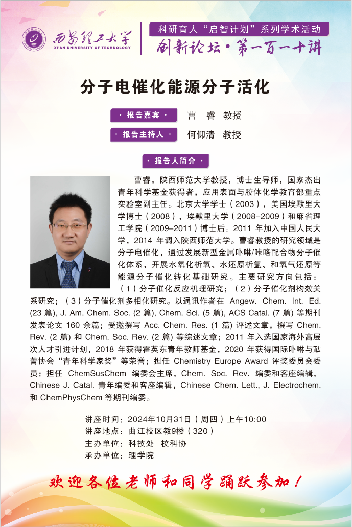 创新论坛第110讲——陕西师范大学曹睿教授学术报告通知